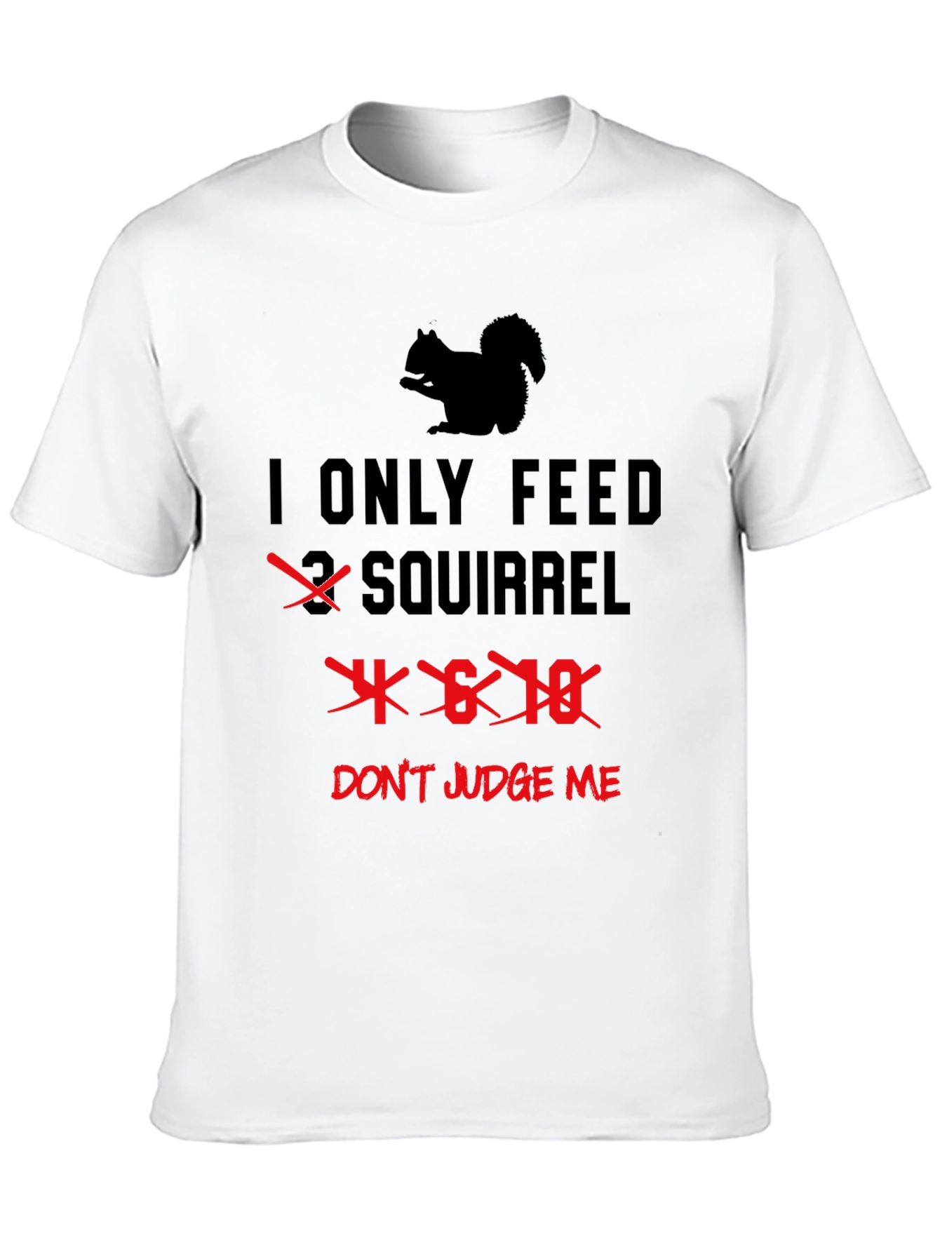 Luce esta divertida camiseta negra para hombre, con un diseño llamativo que muestra una silueta de ardilla sobre un texto humorístico. La frase "I ONLY FEED 2 SQUIRRELS. 4,6,18. DON'T JUDGE ME" está impresa en colores negro y rojo, creando un contraste impactante. Ideal para amantes de los animales y personas con sentido del humor. Perfecta para usar en salidas casuales, reuniones con amigos o simplemente para expresar tu personalidad única. ¡Esta camiseta sin duda llamará la atención y generará sonrisas! Confeccionada con materiales suaves y cómodos para garantizar un ajuste perfecto.