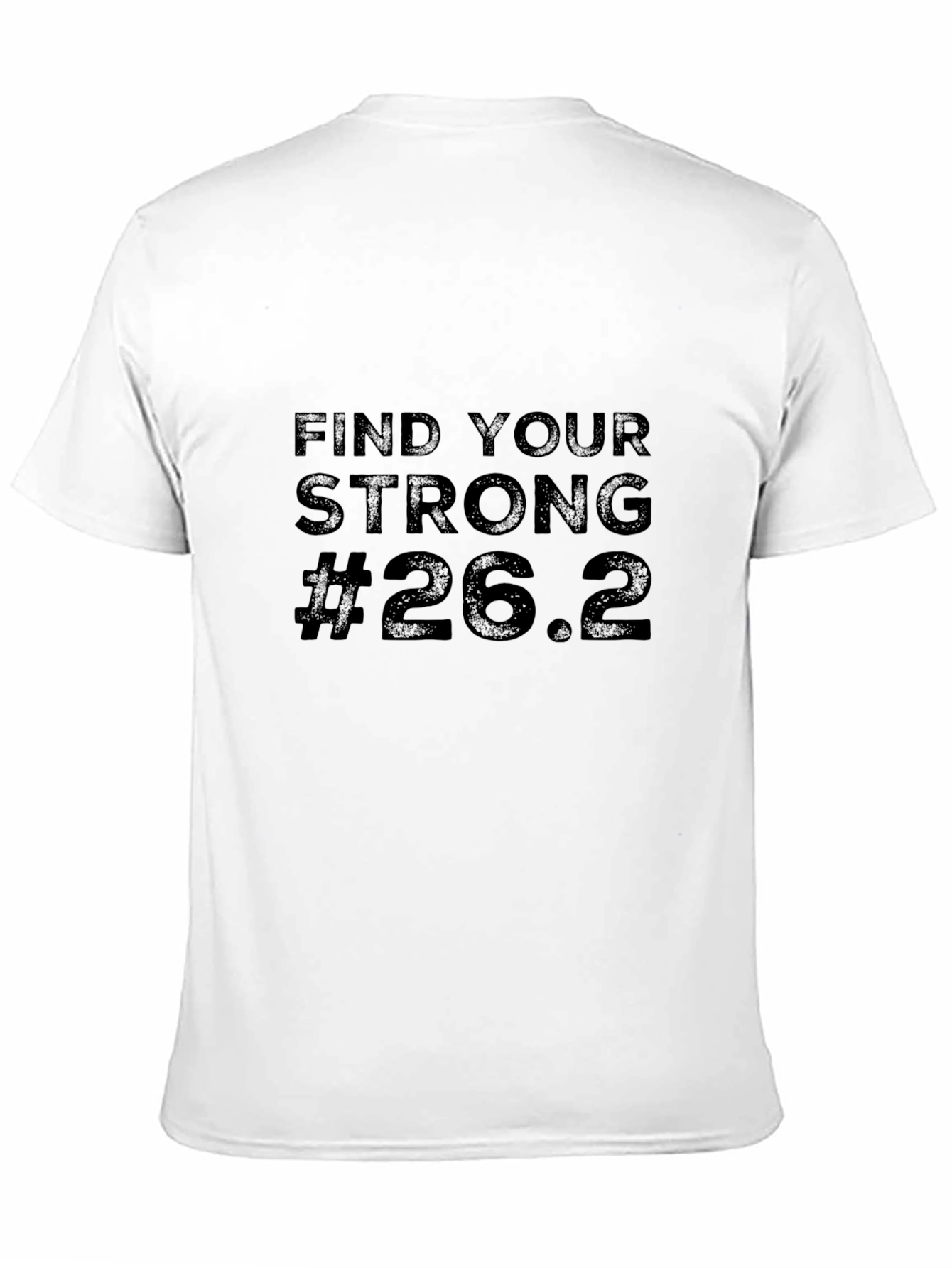 Luce tu espíritu deportivo con esta elegante camiseta negra para hombre. Con un diseño llamativo que incluye la frase "Find Your Strong #26.2", esta camiseta es perfecta para corredores y entusiastas del fitness. Fabricada en un tejido suave y cómodo, es ideal para entrenamientos o para un look casual con un toque motivacional. Su corte clásico y color neutro la hacen versátil y fácil de combinar con cualquier outfit. ¡Muestra tu pasión por el running con esta prenda única!