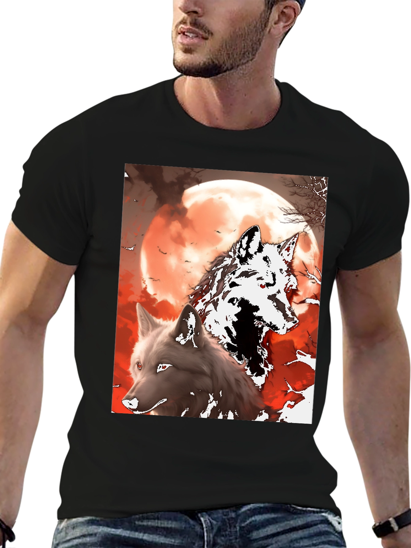 Luce esta imponente camiseta negra con un diseño llamativo de dos lobos bajo la luz de una luna roja. El diseño gráfico de alta calidad captura la esencia salvaje y misteriosa de estos animales. Perfecta para aquellos que buscan expresar su individualidad y pasión por la naturaleza. Fabricada con materiales suaves y cómodos, esta camiseta es ideal para el uso diario o para destacar en eventos casuales. Combínala con tus jeans favoritos o una chaqueta de cuero para un look moderno y audaz. ¡Atrévete a llevar el espíritu del lobo contigo!