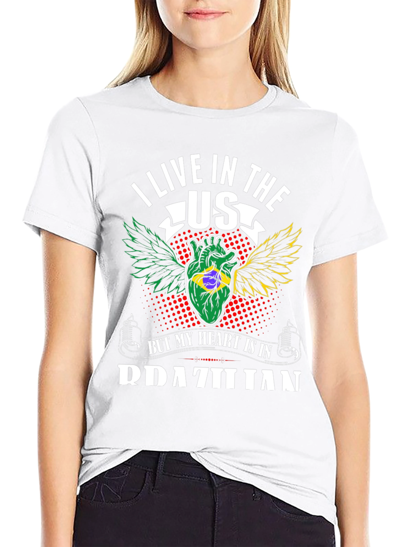 Muestra tu amor por Brasil con esta camiseta negra de diseño llamativo. Presenta un corazón estilizado con los colores de la bandera brasileña, adornado con alas verdes y amarillas, representando orgullo y conexión. La frase "I LIVE IN THE US BUT MY HEART IS IN BRAZILIAN" está impresa en letras blancas contrastantes, ideal para expatriados o amantes de la cultura brasileña. Fabricada en tela suave y cómoda, esta camiseta es perfecta para uso casual, eventos culturales o como un regalo especial para un ser querido. ¡Lleva tu pasión por Brasil con estilo!