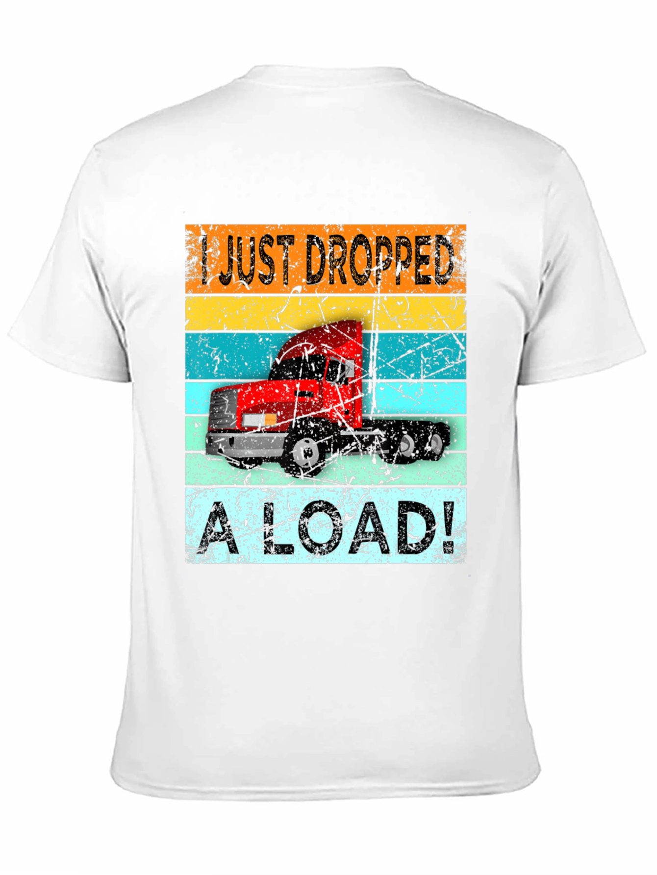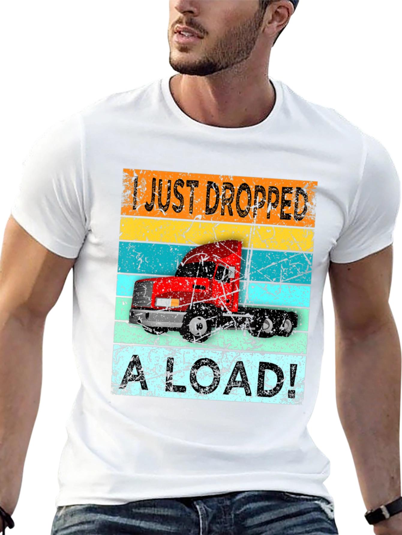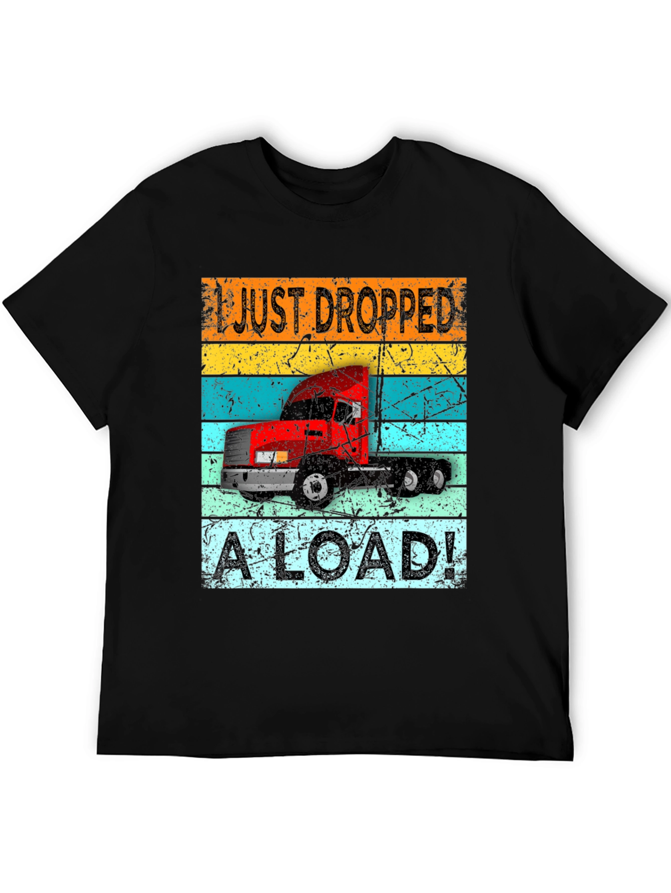 Luce esta llamativa camiseta negra con un diseño único. La camiseta presenta la frase "¡Acabo de Dejar Una Carga!" junto a la ilustración de un camión rojo sobre un fondo retro con franjas de colores. Perfecta para camioneros, amantes de los camiones y aquellos con un sentido del humor audaz. Fabricada con materiales de alta calidad, esta camiseta ofrece comodidad y durabilidad. Su diseño original y divertido la convierte en una excelente opción para el uso diario o para regalar a alguien especial. ¡Atrévete a destacar con esta prenda única y expresa tu pasión por el mundo del transporte!