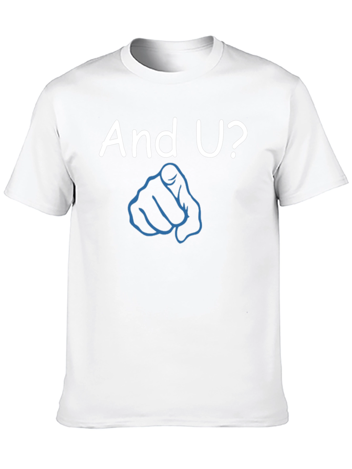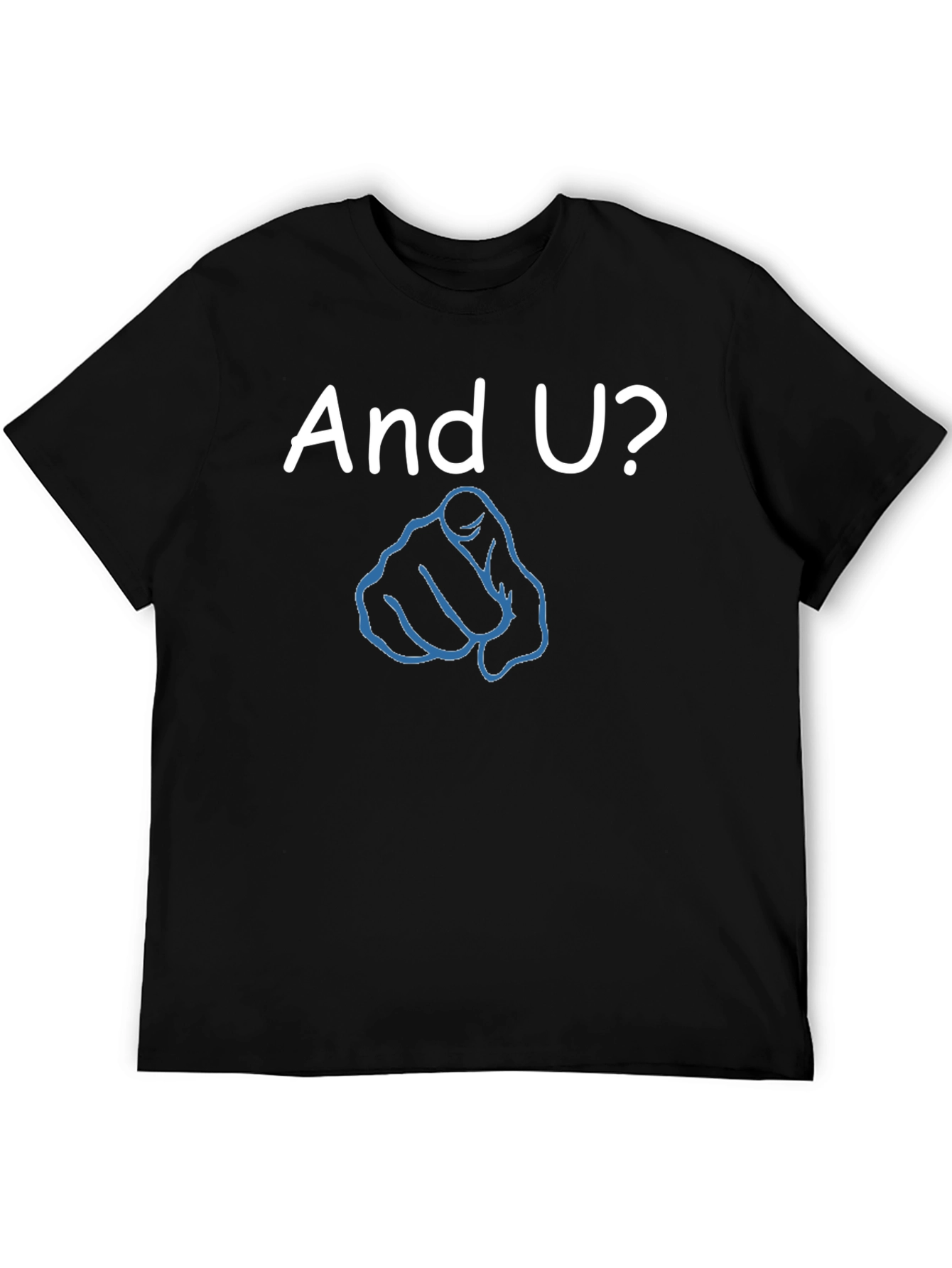 Esta elegante camiseta negra presenta un diseño divertido y llamativo. La frase "And U?" (¿Y tú?) destaca en un color blanco contrastante, acompañada de una ilustración de una mano que señala al espectador en un tono azul eléctrico. Fabricada con un material suave y cómodo, esta camiseta de manga corta es perfecta para el uso diario. Su corte clásico favorece a cualquier figura, convirtiéndola en una prenda versátil para diversas ocasiones. Ideal para expresar tu personalidad y sentido del humor, esta camiseta añadirá un toque único a tu guardarropa. Úsala para salir con amigos, relajarte en casa o para cualquier evento casual donde quieras destacar. ¡Atrévete a hacer una declaración de estilo!