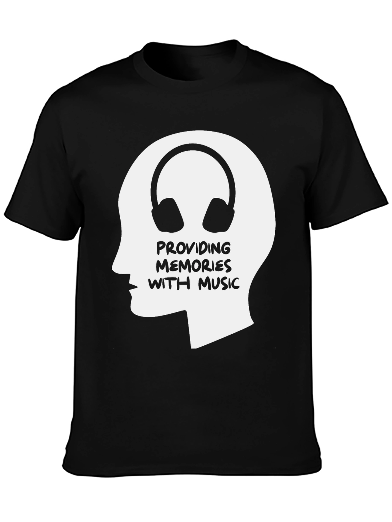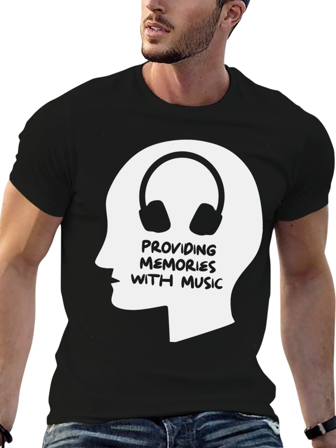 Luce esta camiseta negra de corte clásico que destaca por su diseño original. En la parte frontal presenta una ilustración en blanco de un perfil humano con auriculares, acompañada del texto "PROVIDING MEMORIES WITH MUSIC". Esta prenda es ideal para aquellos amantes de la música que valoran los recuerdos y las emociones que ésta evoca. Confeccionada con materiales de alta calidad, ofrece comodidad y durabilidad. Perfecta para un estilo casual y relajado, ya sea para uso diario o para eventos informales. Expresa tu pasión por la música con esta camiseta única y llamativa.