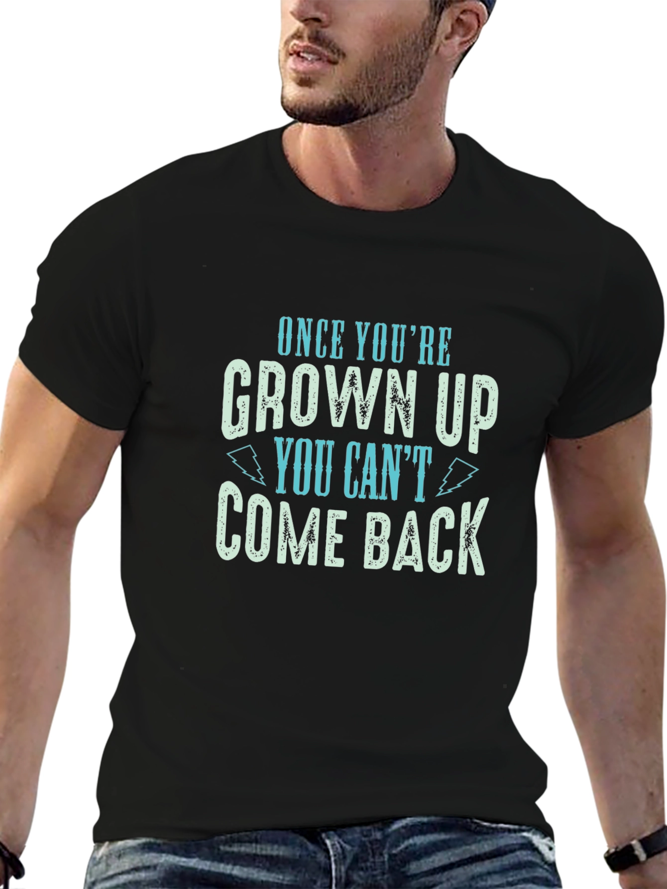 Luce esta camiseta negra con un mensaje reflexivo: "Una vez que creces, no puedes volver". Perfecta para aquellos que aprecian la nostalgia y la madurez. El diseño presenta letras en un tono azul claro, con un estilo moderno y ligeramente desgastado que le da un toque único. Fabricada en un material suave y cómodo, ideal para uso diario. Combina esta camiseta con tus jeans favoritos para un look casual y con estilo. Un regalo perfecto para amigos y familiares que valoran los recuerdos y las experiencias de la vida.