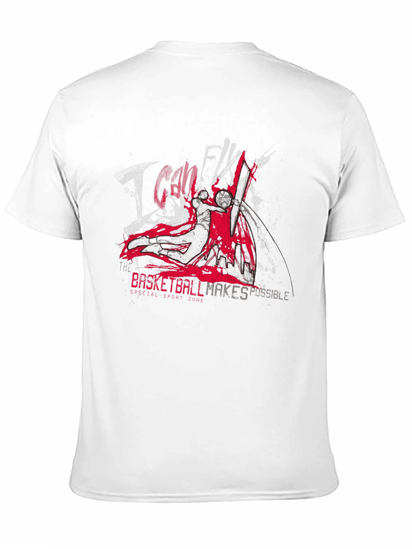Demuestra tu pasión por el baloncesto con esta llamativa camiseta negra. El diseño presenta un impresionante gráfico con la frase "I Can Fly" y una ilustración abstracta en tonos grises y rojos que evoca la energía y dinamismo de este deporte. Fabricada con materiales suaves y cómodos, esta camiseta es ideal para usar a diario, ya sea para practicar deporte o para lucir un estilo casual. La frase "The Basketball Makes Possible" añade un toque inspirador. Perfecta para regalar a cualquier amante del baloncesto.