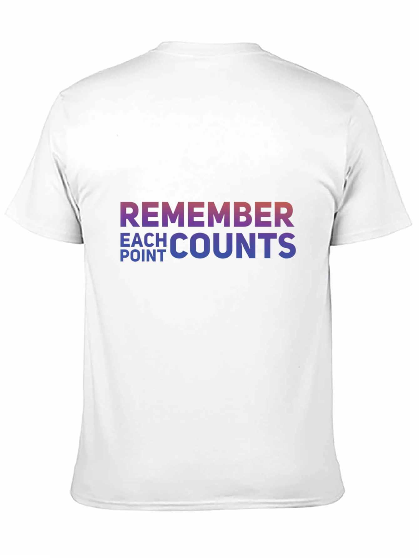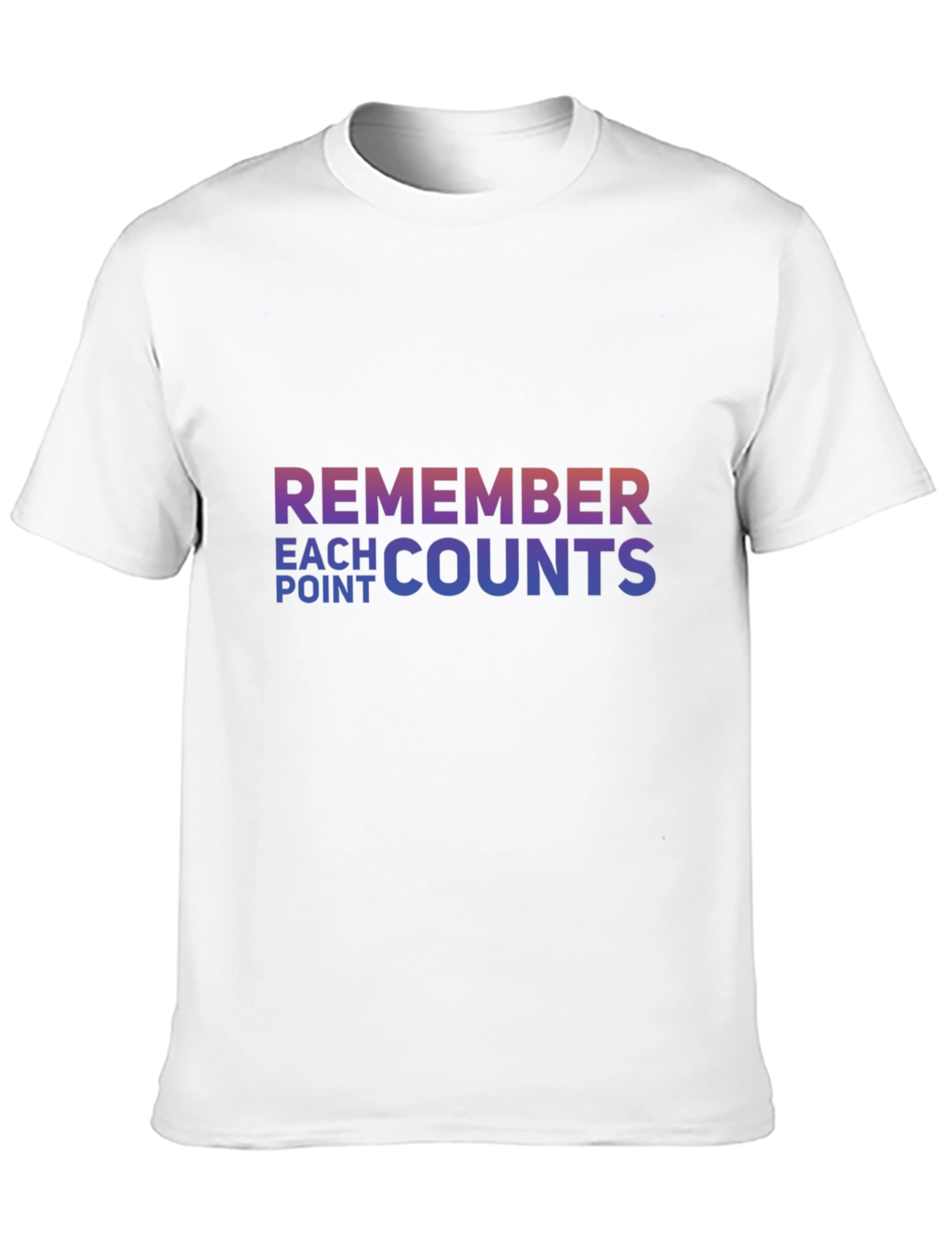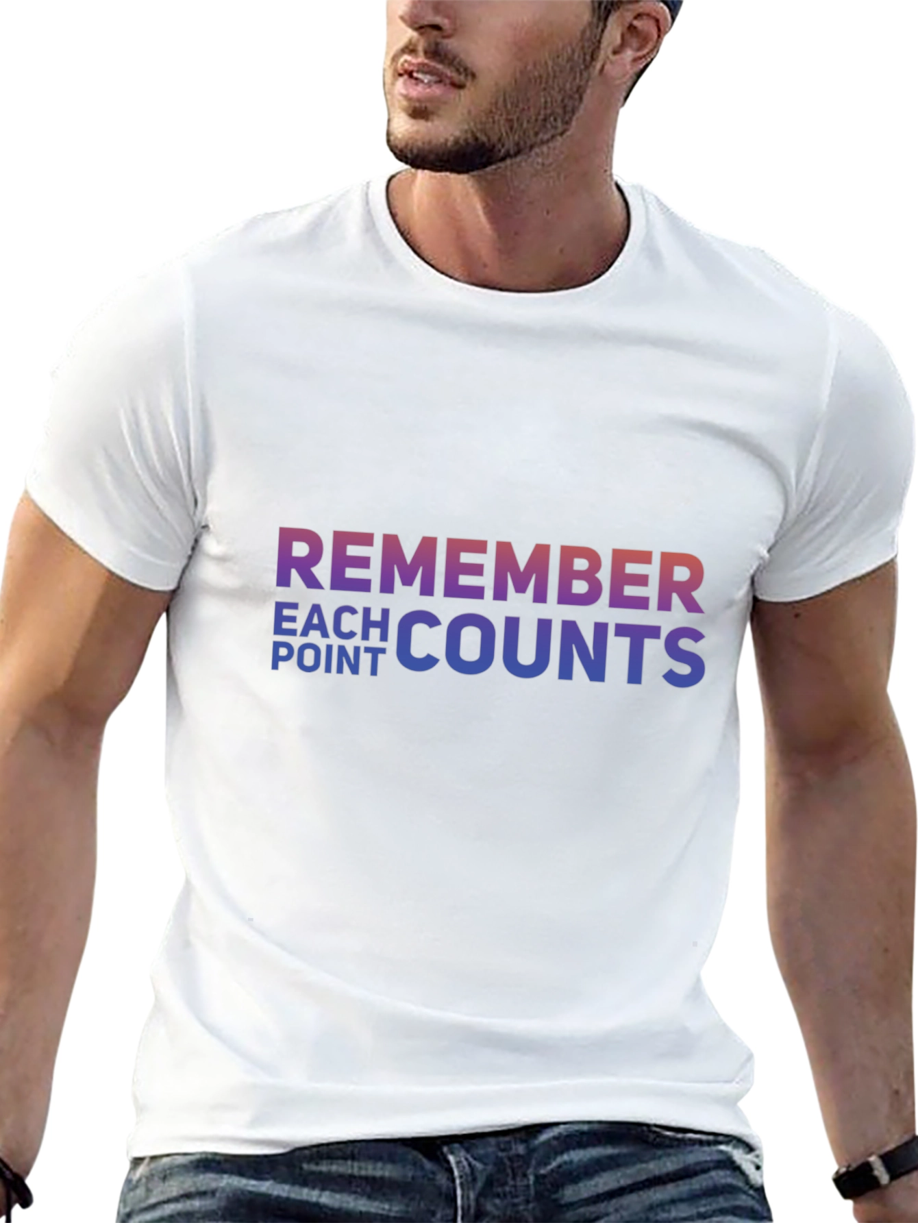 Luce esta moderna camiseta negra con un diseño motivacional que dice "Remember Each Point Counts" con un degradado de color que va desde el rosa hasta el azul. Ideal para usar en el gimnasio, durante tus entrenamientos, o para un estilo casual en el día a día. Su tejido suave y cómodo te permitirá moverte con libertad. Demuestra tu pasión por el deporte y tu mentalidad ganadora con esta prenda única.