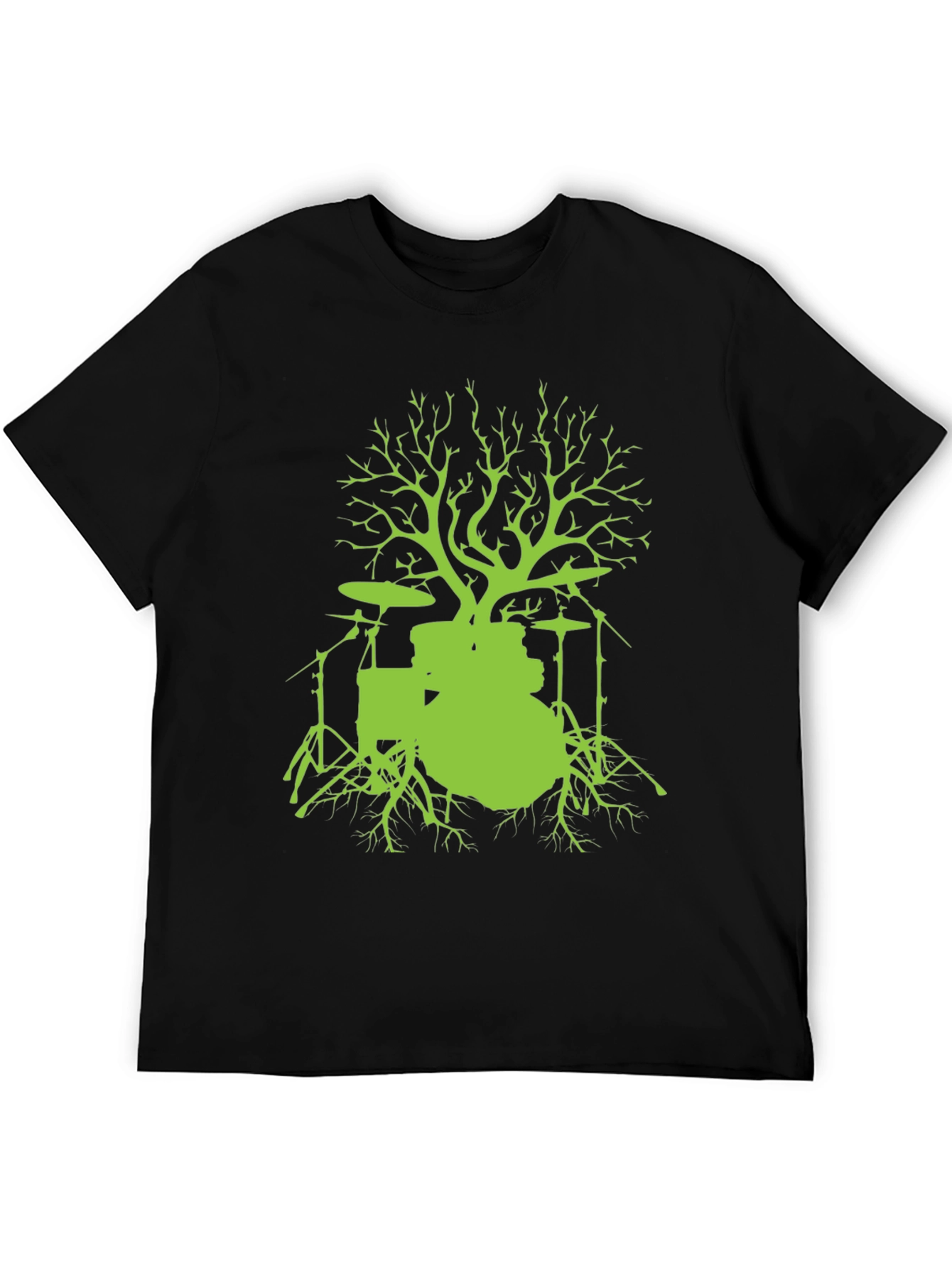 Esta camiseta negra presenta un diseño llamativo y original que fusiona la música y la naturaleza. En el centro, una batería se transforma en un árbol vibrante de color verde lima, con raíces que se extienden hacia abajo y ramas que alcanzan el cielo. La combinación de estos elementos crea un efecto visual único, ideal para amantes de la música y la naturaleza. Perfecta para lucir un estilo creativo y diferenciador en cualquier ocasión casual. Fabricada con materiales de alta calidad para ofrecer comodidad y durabilidad.