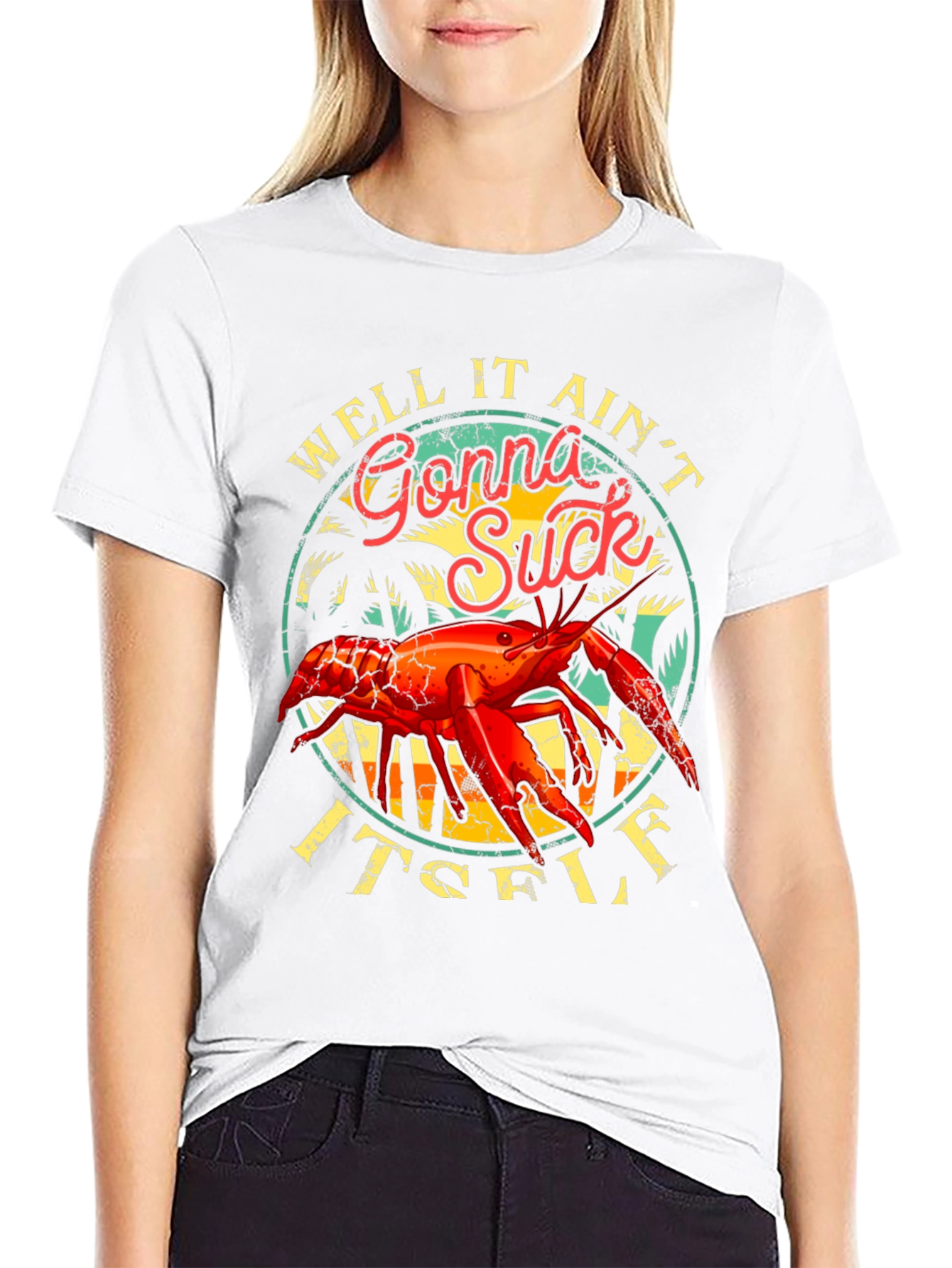 Luce esta original camiseta negra con un diseño audaz y divertido. La camiseta presenta una ilustración de un cangrejo rojo vibrante sobre un fondo de palmeras al atardecer, con un texto ingenioso que seguramente llamará la atención. Fabricada con materiales suaves y cómodos, esta camiseta de manga corta es perfecta para usar a diario, para una reunión informal con amigos o para expresar tu personalidad única. Ideal para los amantes de la vida marina, los diseños llamativos y el humor irreverente. ¡Atrévete a destacar con esta prenda única!