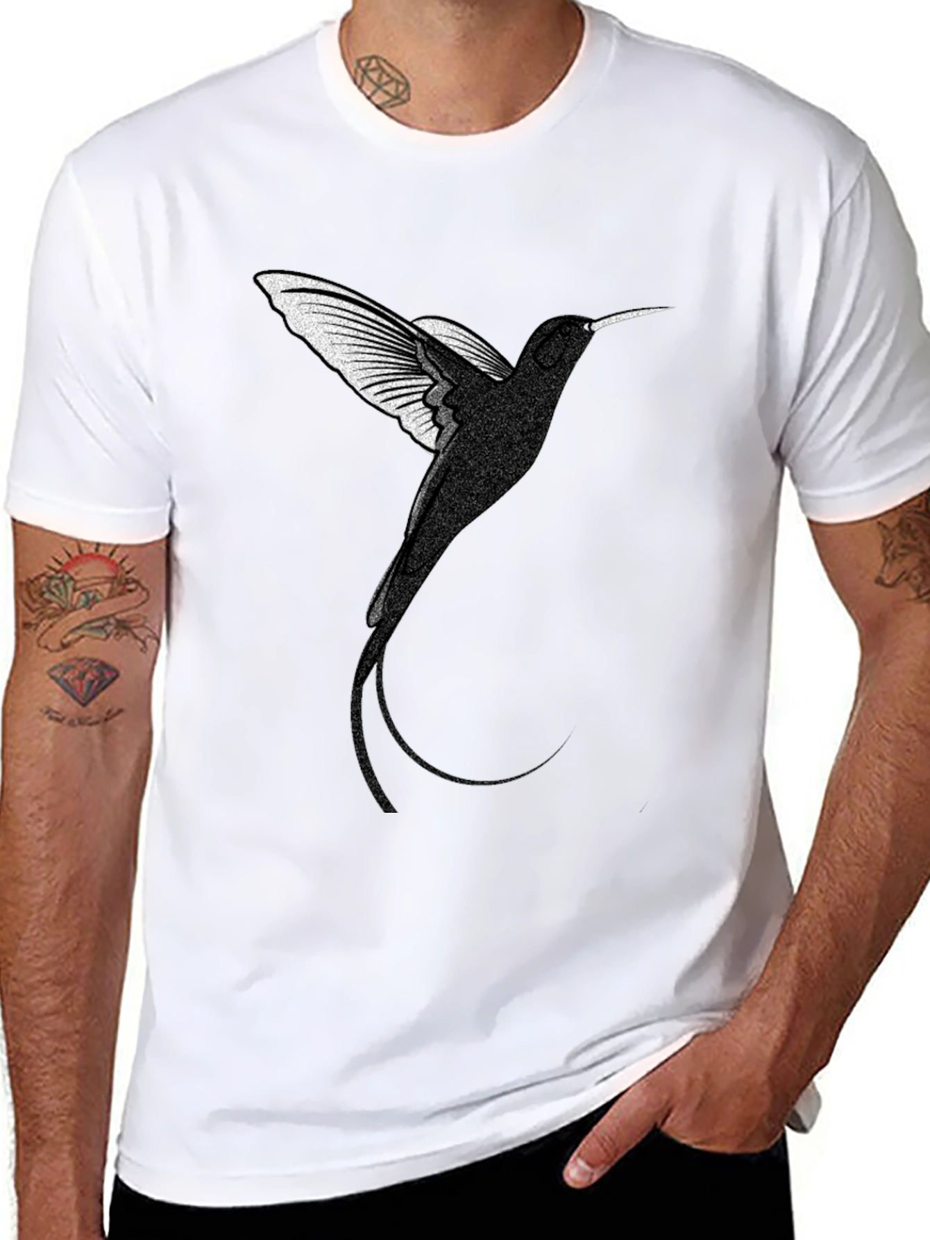 Eleva tu estilo con esta elegante camiseta negra de manga corta. Presenta un diseño llamativo de un colibrí estilizado, con alas blancas que contrastan con el cuerpo oscuro del ave. Perfecta para quienes aprecian la naturaleza y la moda, esta camiseta ofrece un look moderno y sofisticado. Fabricada con materiales suaves al tacto, garantiza comodidad durante todo el día. Ideal para combinar con jeans o pantalones casuales, esta camiseta es perfecta para salidas informales, reuniones con amigos o simplemente para relajarte con estilo. Un toque único para tu guardarropa.