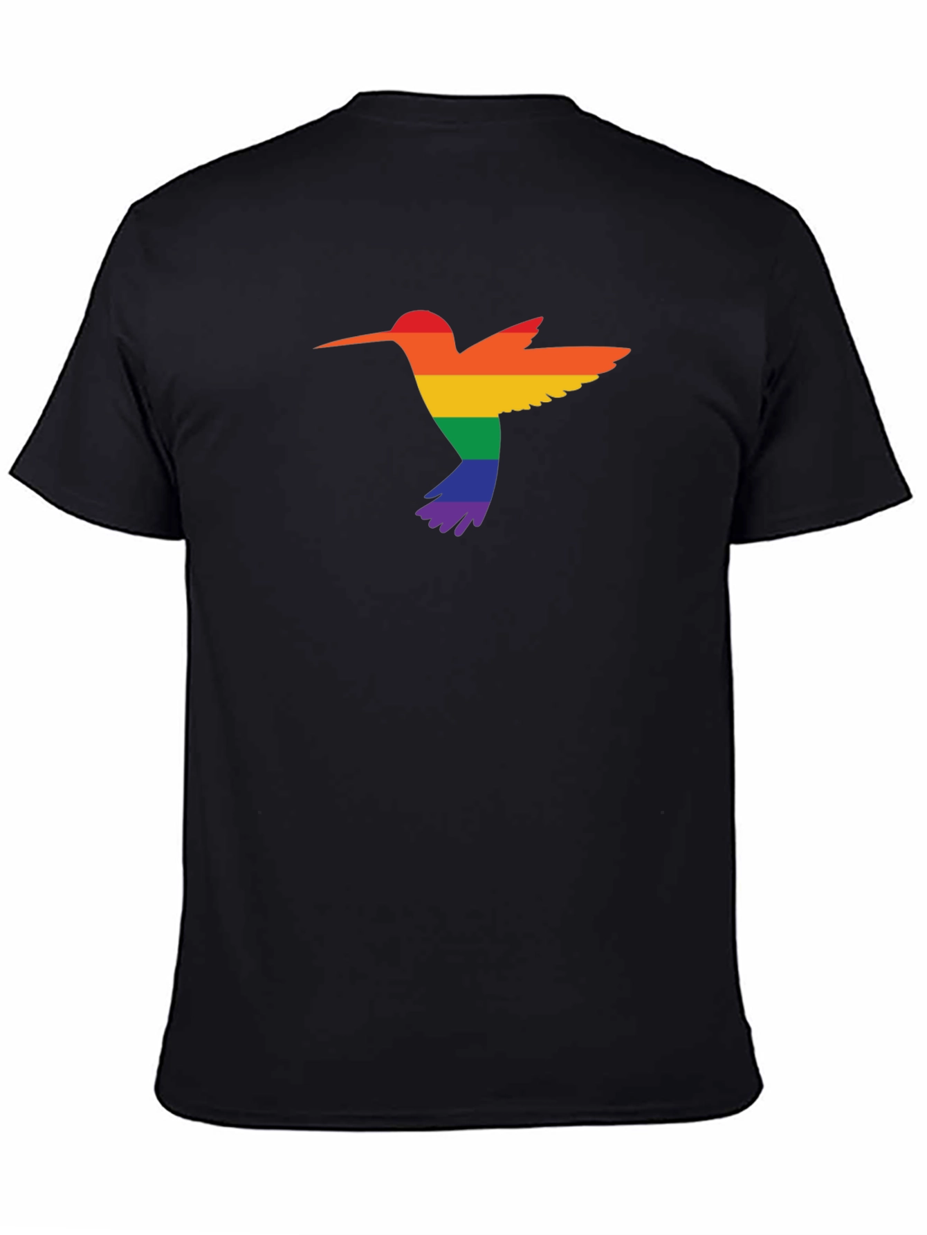 Camiseta Negra con Diseño de Colibrí Arcoíris