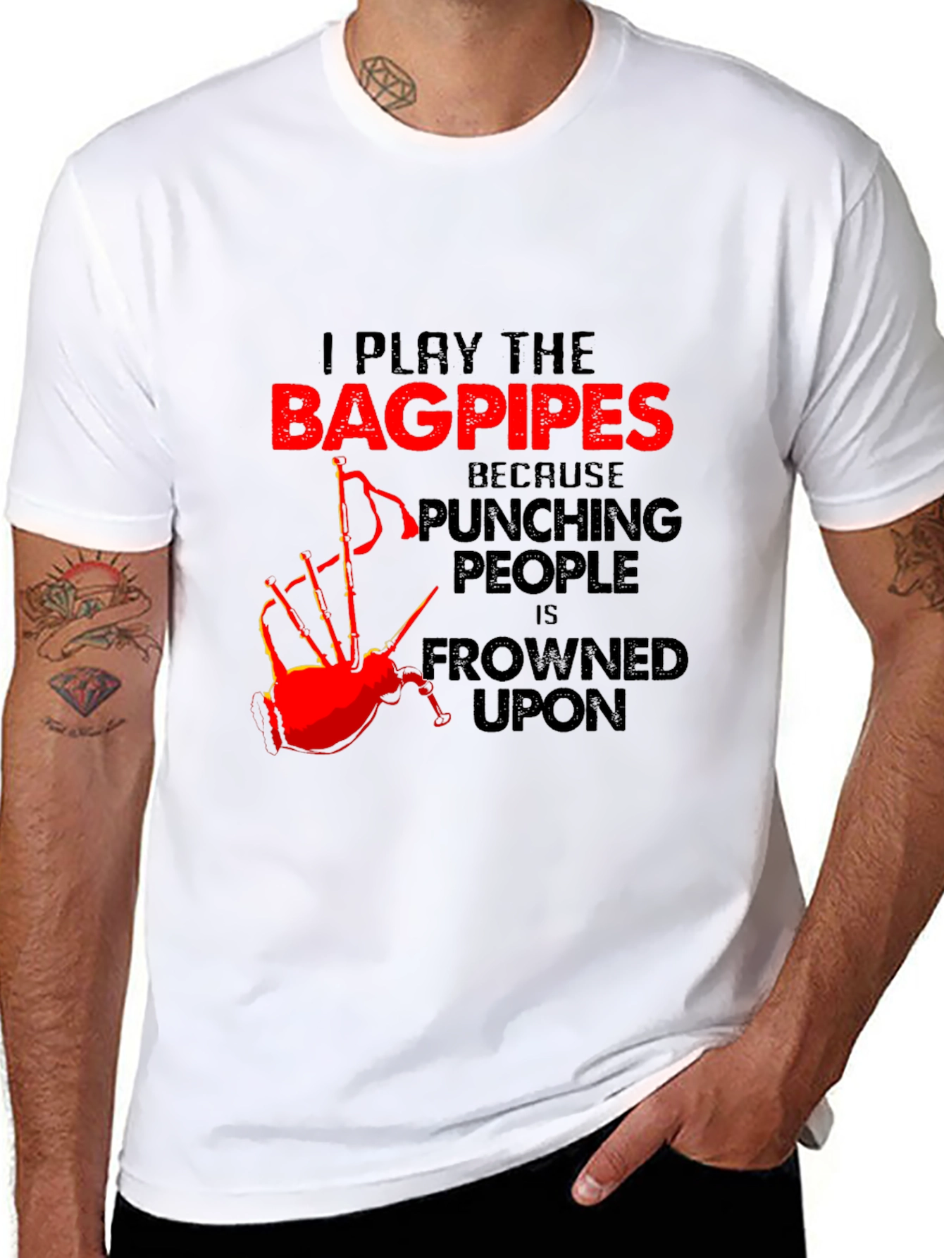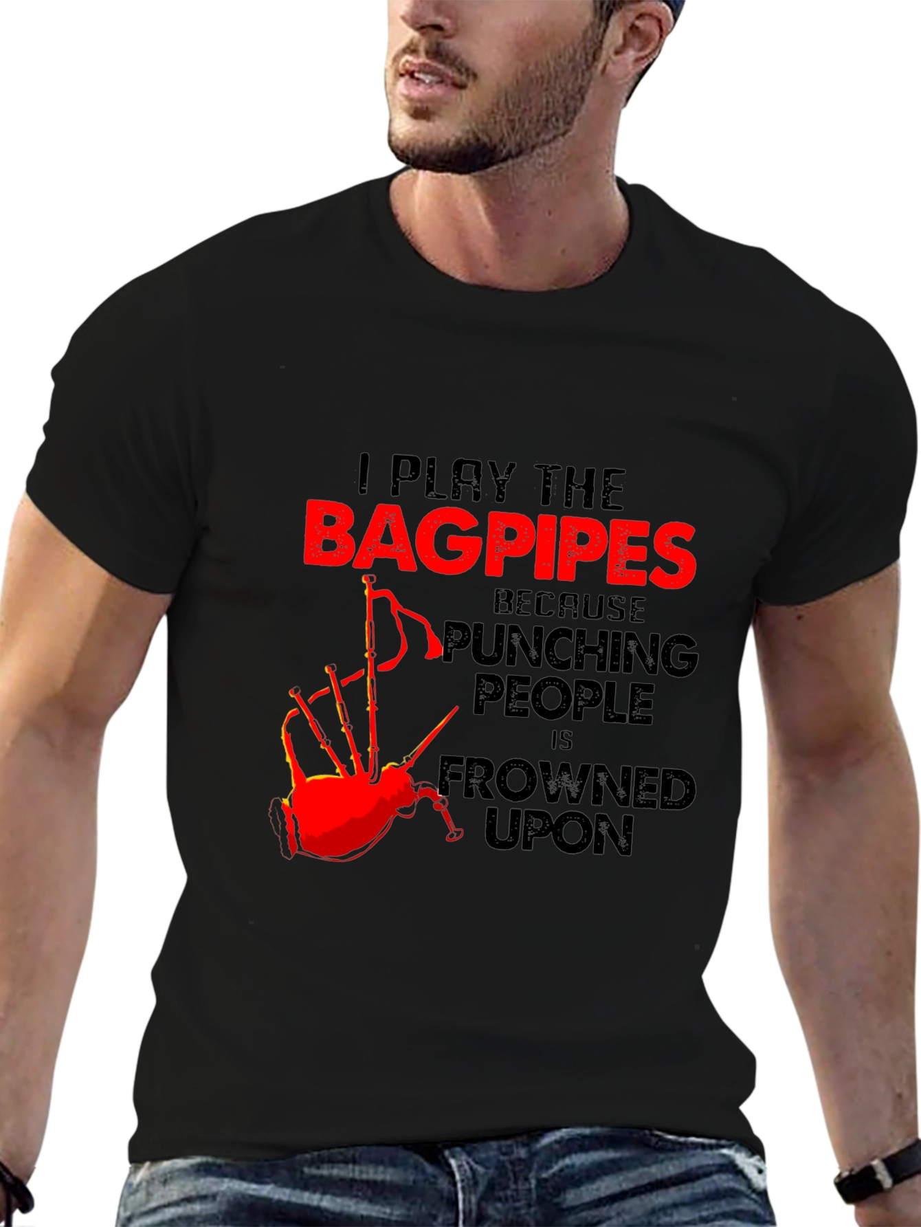 Luce esta llamativa camiseta negra con un diseño único. Presenta una ilustración de una gaita escocesa en color rojo vibrante, acompañada de un texto ingenioso. Hecha de un material suave y cómodo, esta camiseta es ideal para los amantes de la música folclórica, la cultura escocesa, o aquellos con un sentido del humor particular. Perfecta para uso casual, conciertos, festivales o simplemente para expresar tu individualidad. Añade un toque original a tu guardarropa con esta prenda que seguramente captará miradas y generará conversaciones.