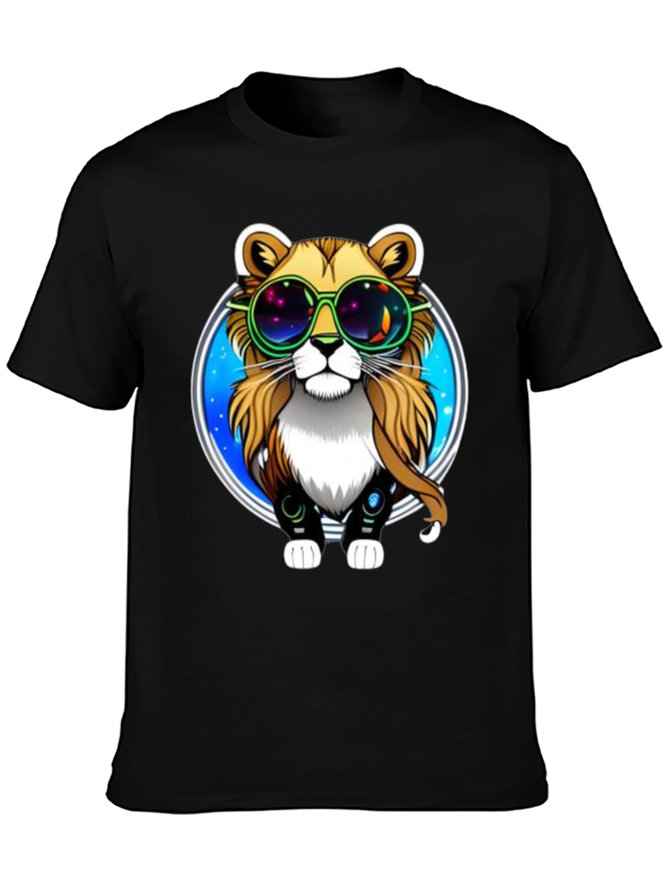 Luce un estilo único con esta llamativa camiseta negra. El diseño presenta un león con gafas de sol cósmicas, enmarcado en un círculo azul estelar. Perfecta para destacar, esta camiseta combina comodidad y originalidad. Ideal para uso diario, eventos casuales o como una declaración de moda audaz. Un diseño divertido y moderno que captura la atención y refleja tu personalidad. Fabricada con materiales suaves y duraderos para un confort prolongado. ¡Atrévete a lucir diferente con esta prenda que te hará rugir con estilo!