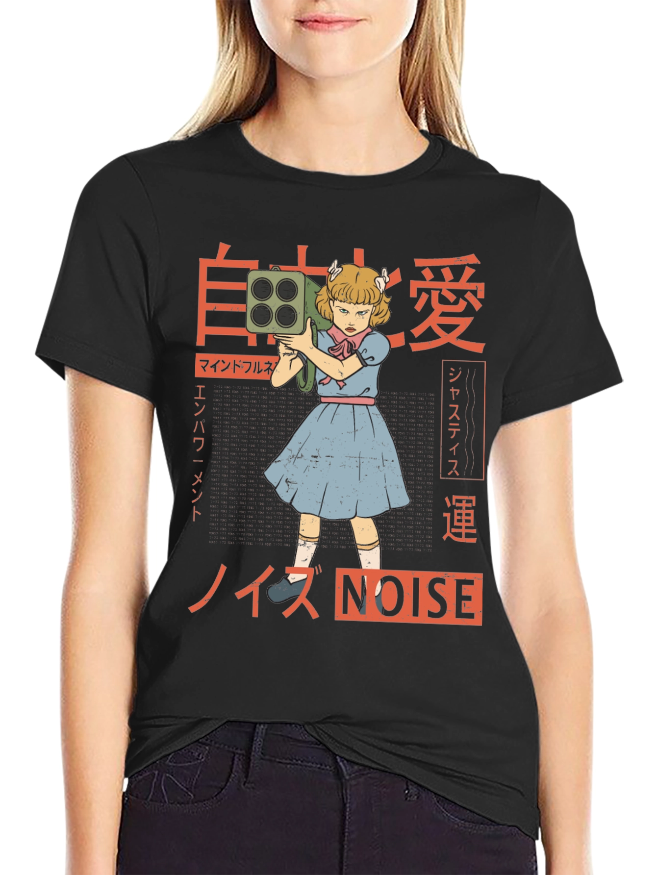 Camiseta Negra con Diseño Estilo Anime NOISE