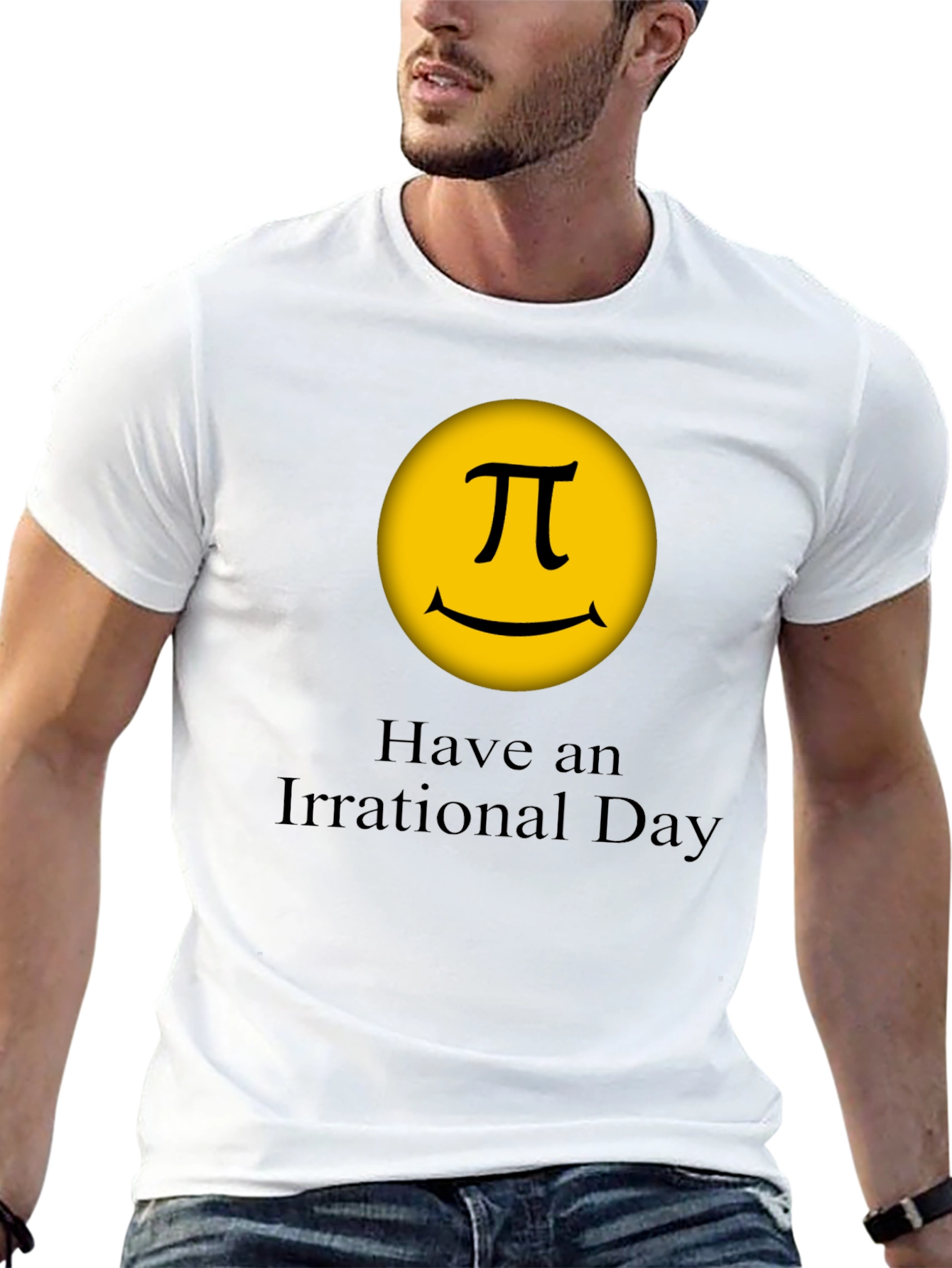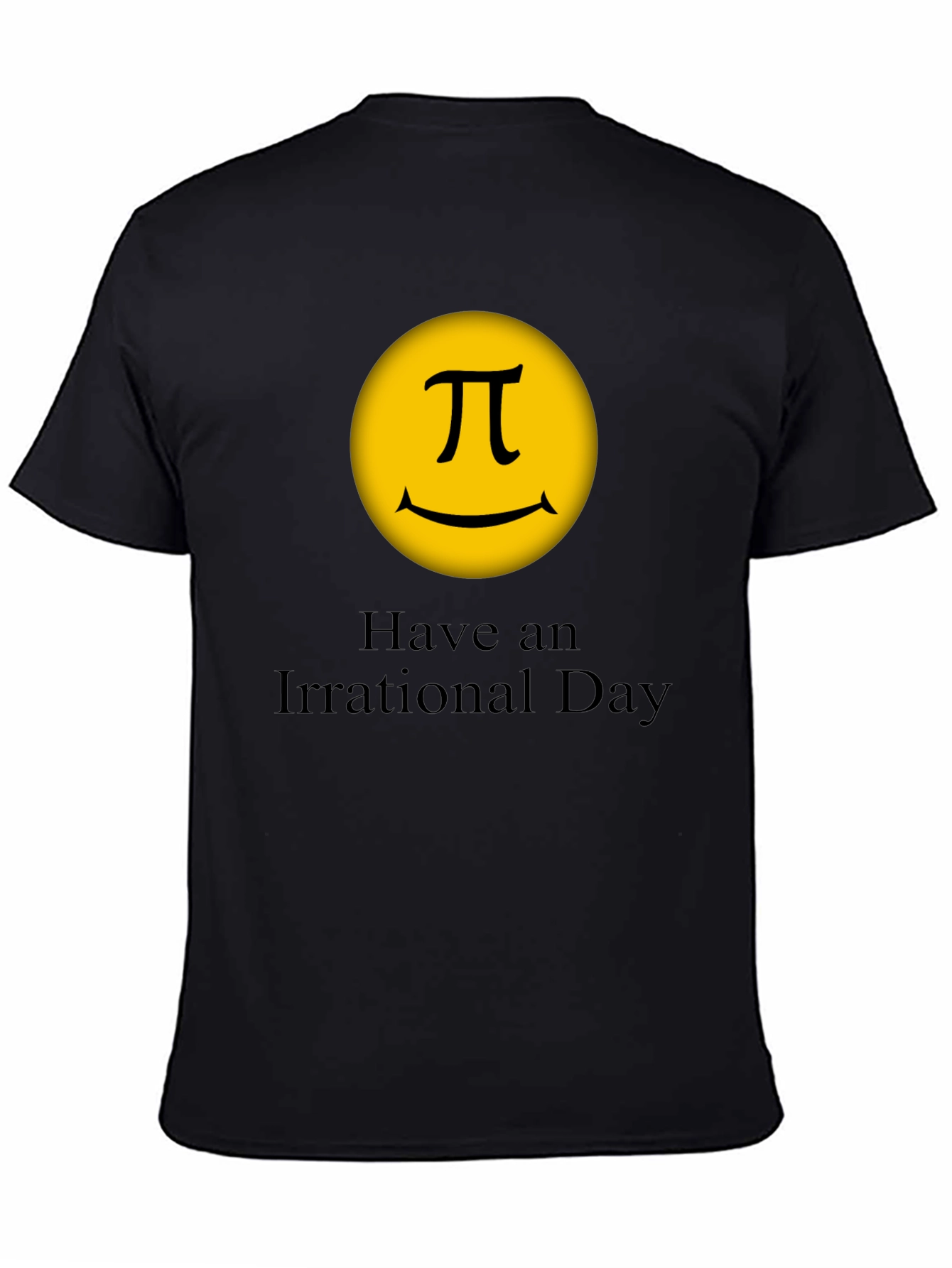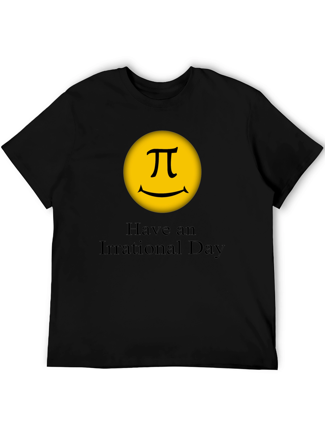 Luce tu lado geek con esta llamativa camiseta negra de manga corta. Presenta un diseño único que combina humor y matemáticas, mostrando una cara sonriente amarilla con el símbolo de Pi (π) en lugar de los ojos, acompañada del texto "Have an Irrational Day". Ideal para estudiantes, profesores o cualquier persona que aprecie un buen juego de palabras y un estilo original. Perfecta para llevar a clases, eventos informales o simplemente para expresar tu personalidad. Esta camiseta de corte cómodo y tejido suave te mantendrá fresco y a la moda. Un regalo original y divertido para cualquier amante de las matemáticas.
