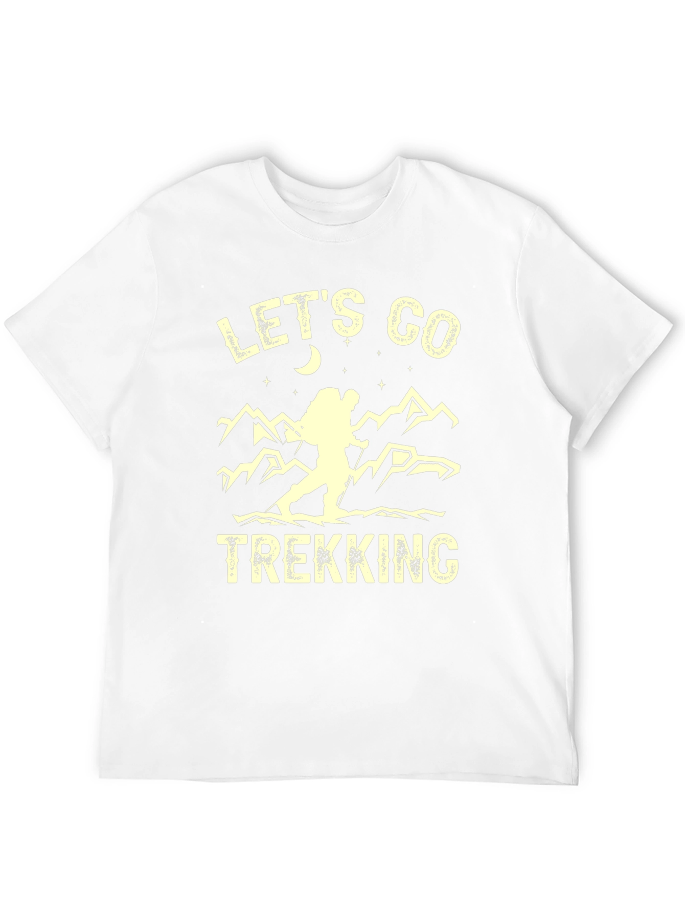 Prepárate para la aventura con esta llamativa camiseta negra. El diseño presenta un estampado en color crema que dice "Let's Go Trekking", acompañado de una ilustración de una persona practicando senderismo en las montañas bajo la luna. Ideal para los amantes de la naturaleza y las actividades al aire libre, esta camiseta combina estilo y pasión por el trekking. Su tejido suave y cómodo la hace perfecta para llevar en tus excursiones o en tu día a día. ¡Muestra tu espíritu aventurero con esta prenda única!
