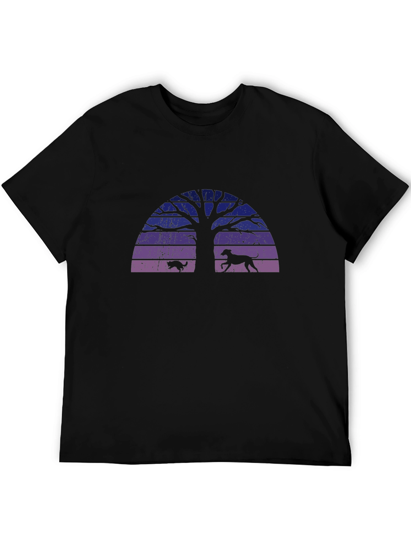 Camiseta Negra Diseño Árbol y Perros Silueta