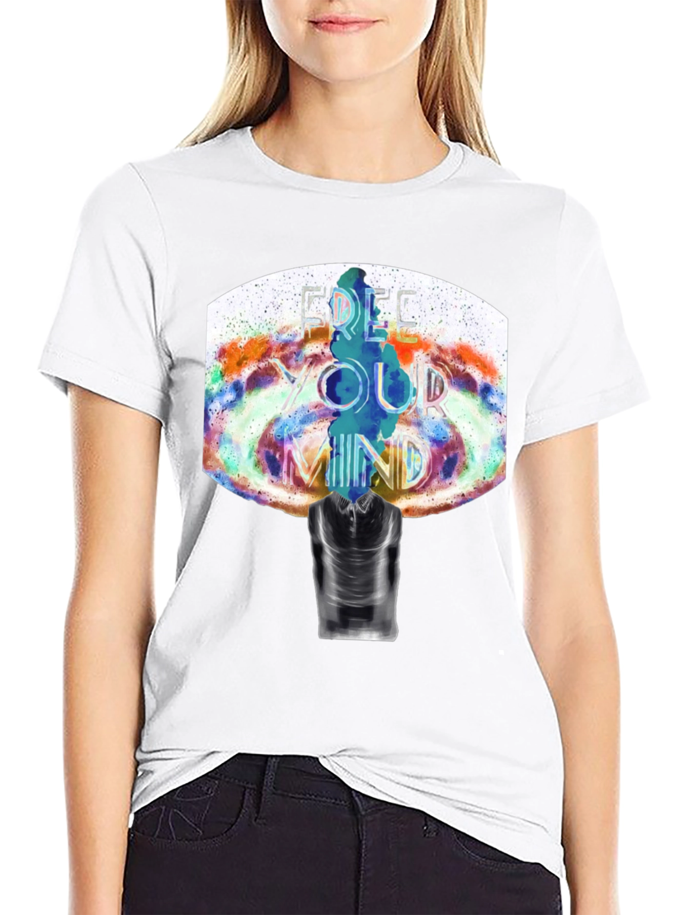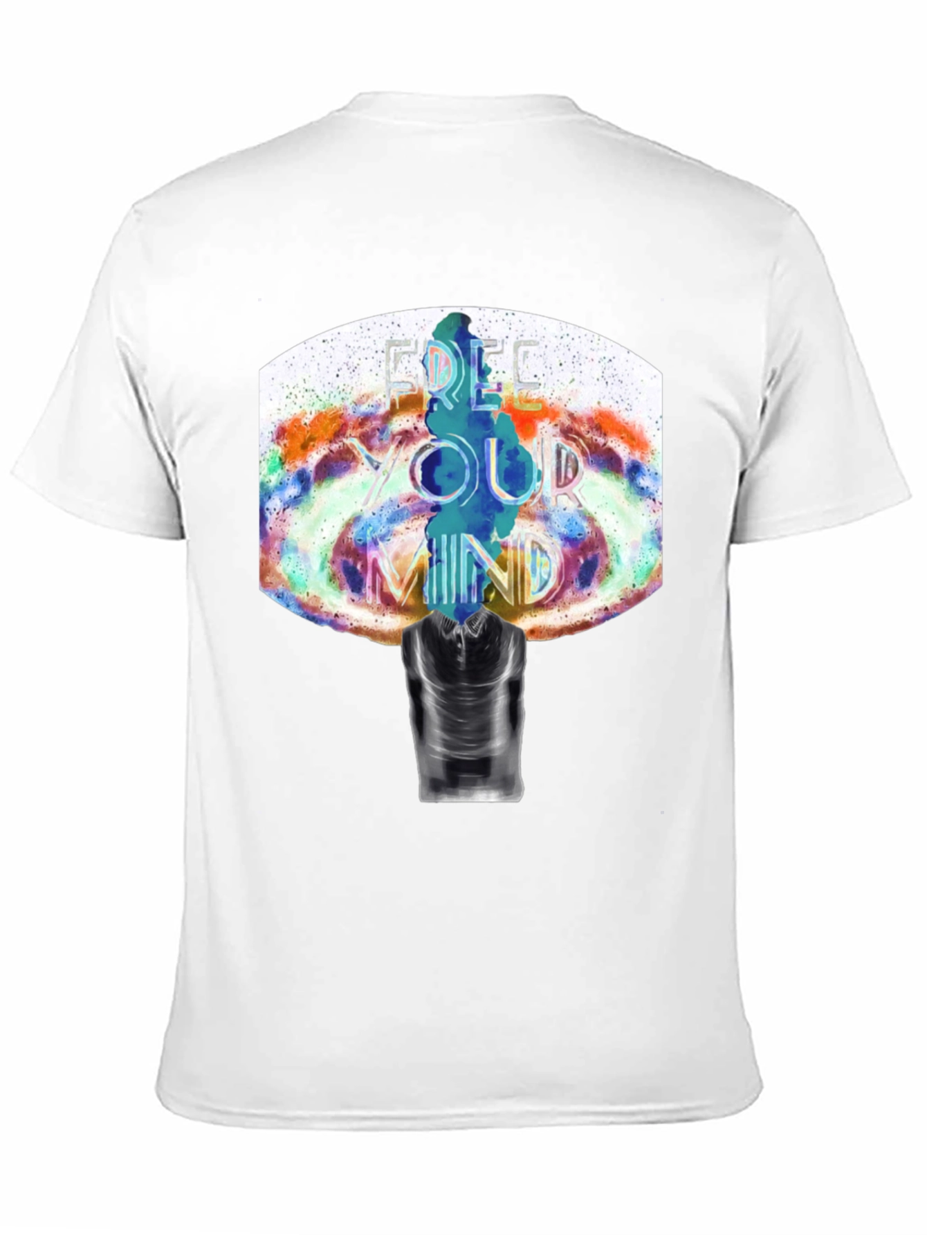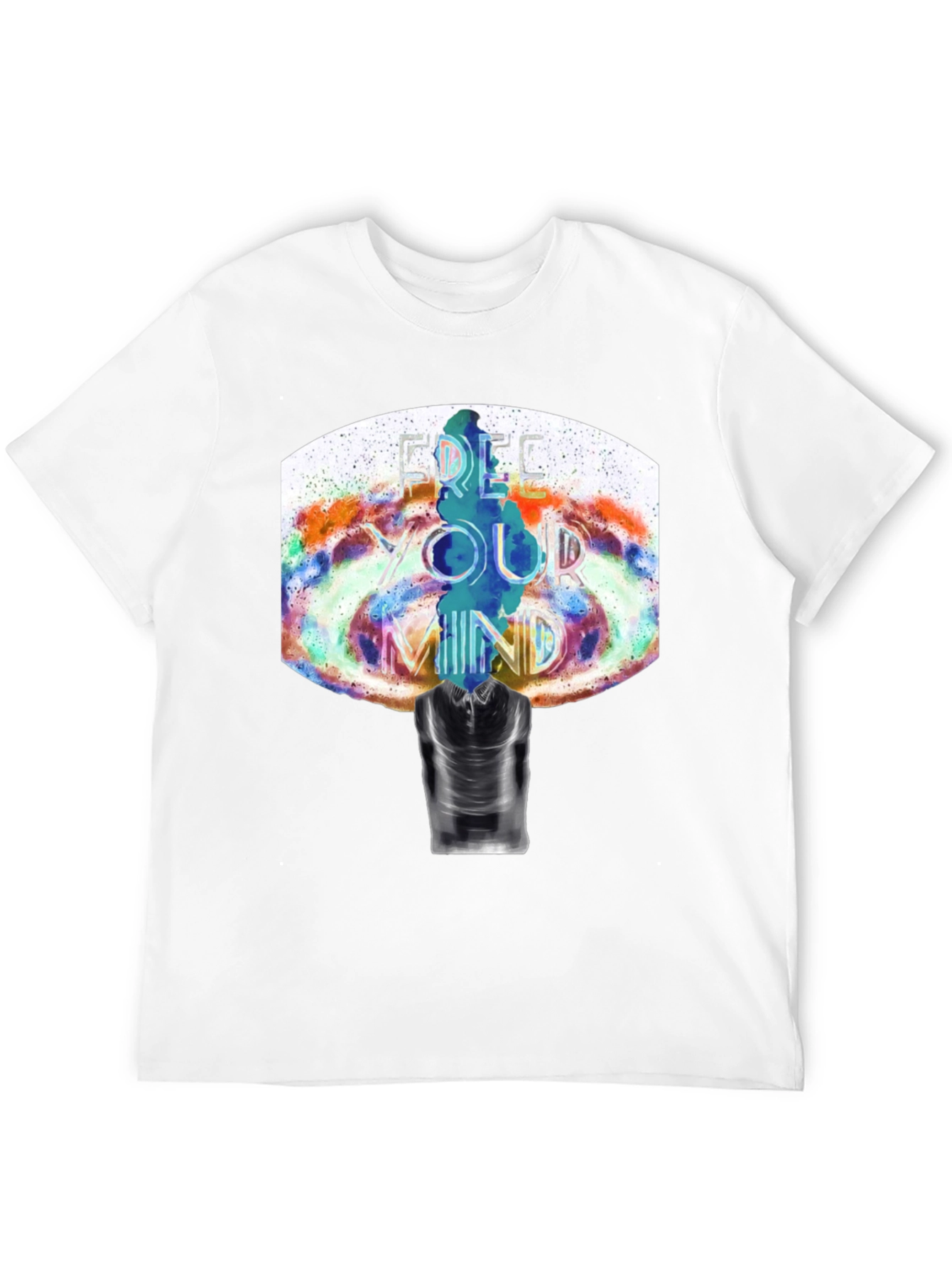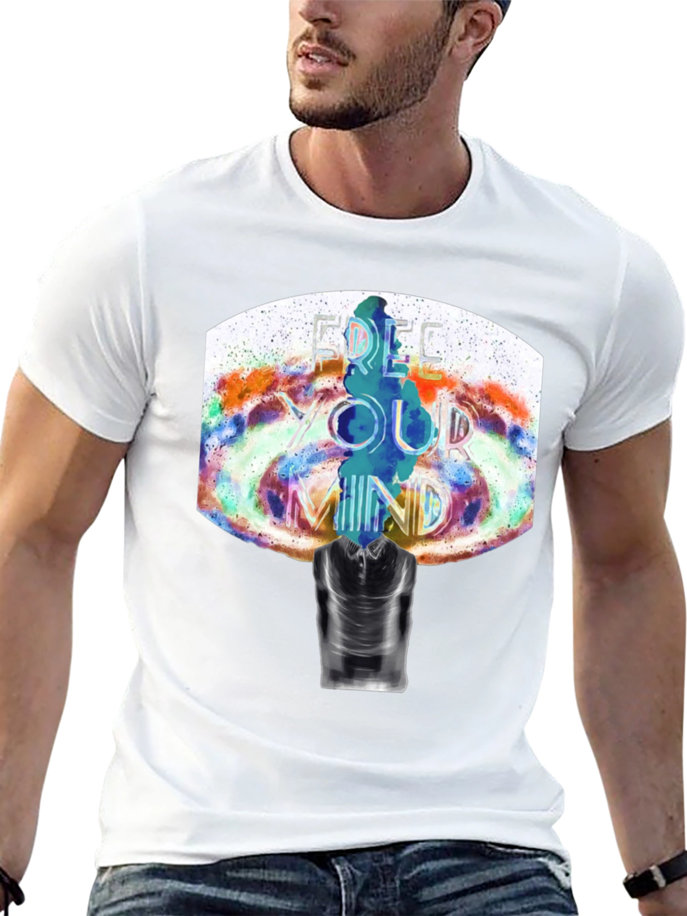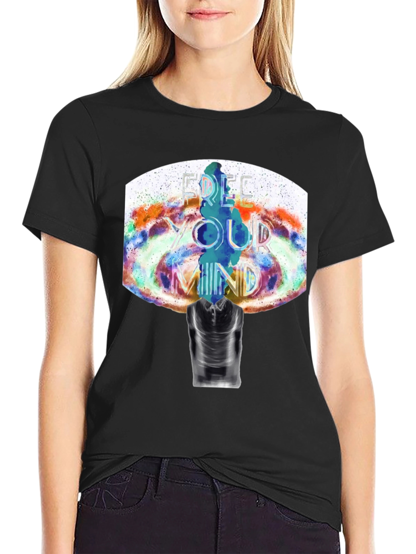Expresa tu individualidad con esta llamativa camiseta negra. Presenta un diseño artístico con la frase "Free Your Mind" (Libera Tu Mente) sobre un fondo vibrante de colores difuminados y una imagen abstracta. Fabricada en un tejido suave y cómodo, esta camiseta de manga corta es perfecta para el uso diario, ya sea para relajarte en casa o para salir con amigos. Su diseño único la convierte en una excelente opción para aquellos que buscan destacar entre la multitud y expresar su creatividad.