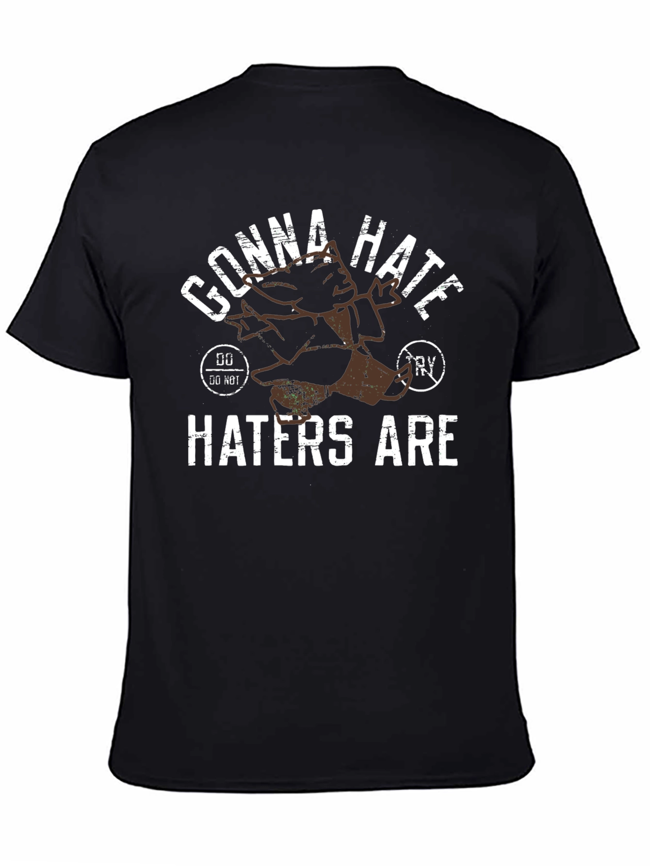 Luce un estilo audaz con esta camiseta negra de manga corta. Destaca con el estampado "Gonna Hate Haters Are", diseñado con un toque vintage que le da un aspecto único y llamativo. Perfecta para expresar tu individualidad, esta camiseta es ideal para usar en el día a día, eventos casuales o para complementar tu estilo urbano. Su diseño versátil combina bien con jeans, shorts o pantalones deportivos. Fabricada con materiales cómodos y duraderos, esta camiseta te asegura un ajuste perfecto y una sensación agradable durante todo el día. ¡Demuestra tu actitud y marca la diferencia con esta camiseta!