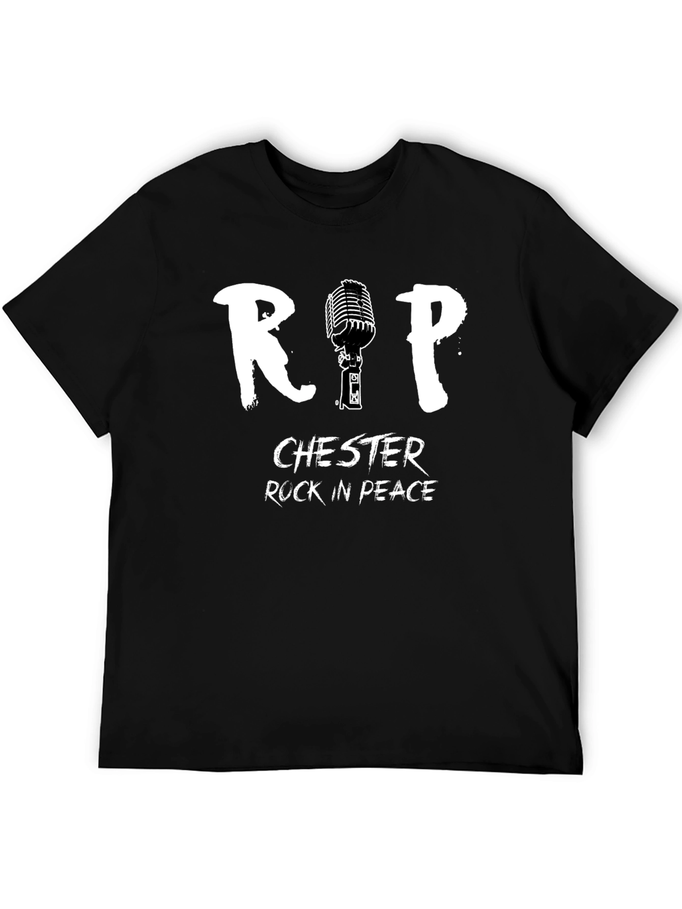 Luce esta camiseta negra con un diseño único en homenaje a Chester Bennington. El estampado en blanco destaca la inscripción "R.I.P" junto a un micrófono vintage, evocando el legado musical del artista. Debajo, el nombre "CHESTER" y la frase "ROCK IN PEACE" completan el tributo. Fabricada en un tejido suave y cómodo, esta camiseta de manga corta es ideal para fans y amantes de la música. Perfecta para uso diario, conciertos o como pieza de colección. Expresa tu admiración con estilo y honra la memoria de un ícono musical.