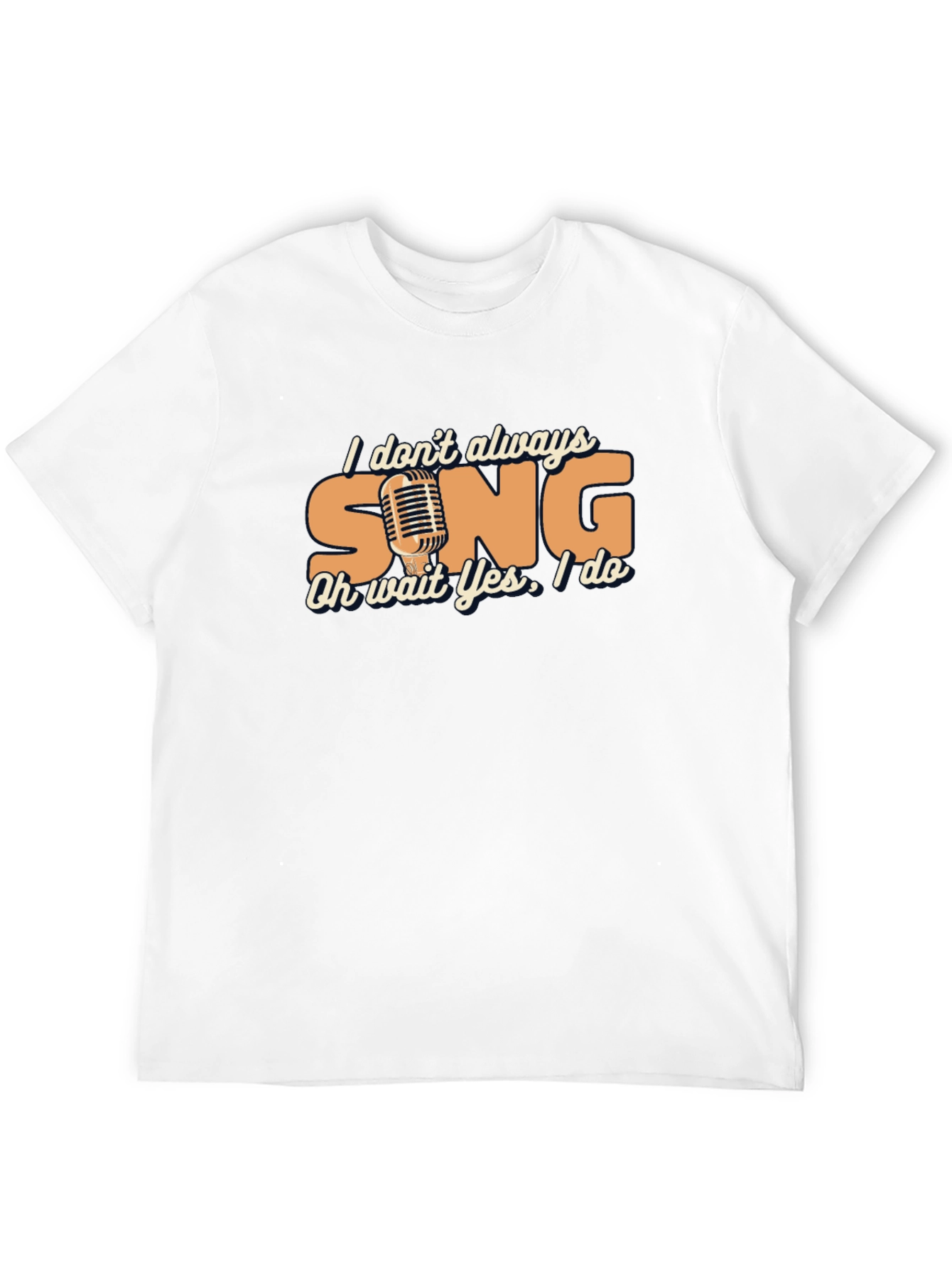 Esta camiseta negra presenta un diseño divertido para los amantes de la música. Destaca la frase "I don't always SING. Oh wait Yes, I do" (No siempre CANTO. Ah, espera, sí lo hago) en tonos anaranjados y blancos, con una ilustración de un micrófono clásico. Ideal para aquellos con un sentido del humor y una pasión por cantar. Perfecta para usar en conciertos informales, reuniones de amigos o simplemente para expresar tu amor por la música en tu día a día. El corte clásico de la camiseta asegura comodidad y un ajuste favorecedor. Añade un toque de diversión musical a tu vestuario con esta original prenda.