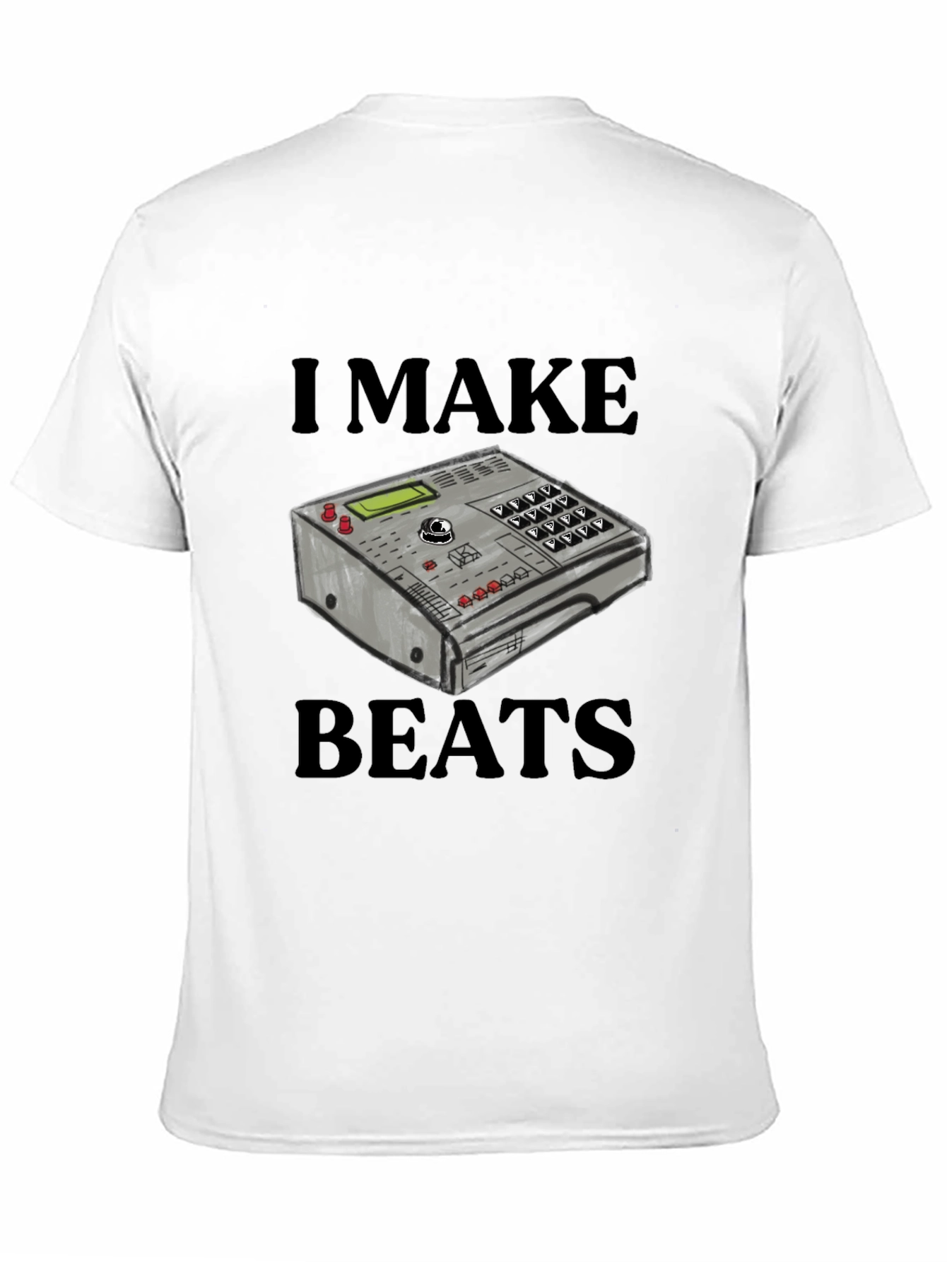 Luce tu pasión por la música con esta camiseta negra de diseño único. Muestra un estampado llamativo de un equipo de música con la frase "I MAKE BEATS", perfecta para músicos, productores y amantes de la música electrónica. Fabricada en un material suave y cómodo, ideal para el uso diario o para destacar en tus presentaciones musicales. Su diseño original y moderno te hará destacar entre la multitud. ¡Expresa tu creatividad y amor por la música con esta prenda imprescindible en tu guardarropa! Perfecta para regalar a ese amigo DJ o productor musical.