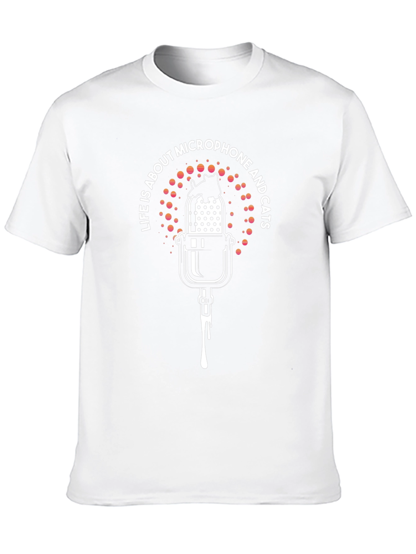 Expresa tu amor por la música y los felinos con esta original camiseta negra. El diseño presenta un micrófono estilizado con un gato encima, rodeado de un divertido estampado de puntos. La frase "Life is about microphone and cats" completa el diseño, dándole un toque único y personal. Ideal para músicos, amantes de los gatos o cualquier persona con un sentido del humor peculiar. Fabricada con materiales suaves y cómodos, esta camiseta es perfecta para el uso diario, conciertos o simplemente para relajarte en casa. Destaca entre la multitud con esta prenda llamativa y muestra tu pasión por tus dos grandes amores.