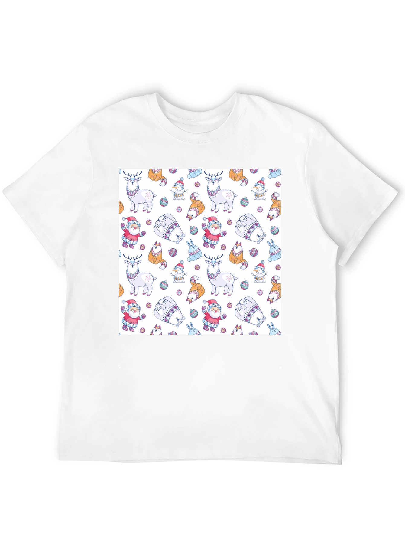 Celebra la temporada navideña con esta alegre camiseta negra. Presenta un estampado encantador con motivos navideños, incluyendo renos, Santa Claus, conejos y adornos festivos, todo sobre un fondo blanco nítido. El diseño añade un toque de diversión y espíritu navideño a tu vestuario diario. Hecha con tela suave y cómoda, esta camiseta es perfecta para usar durante las fiestas, reuniones familiares o simplemente para difundir la alegría navideña. Su corte clásico asegura un ajuste favorecedor para todos. Combínala con tus vaqueros favoritos o pantalones para un look casual pero festivo. Prepárate para recibir elogios mientras luces esta encantadora prenda navideña.