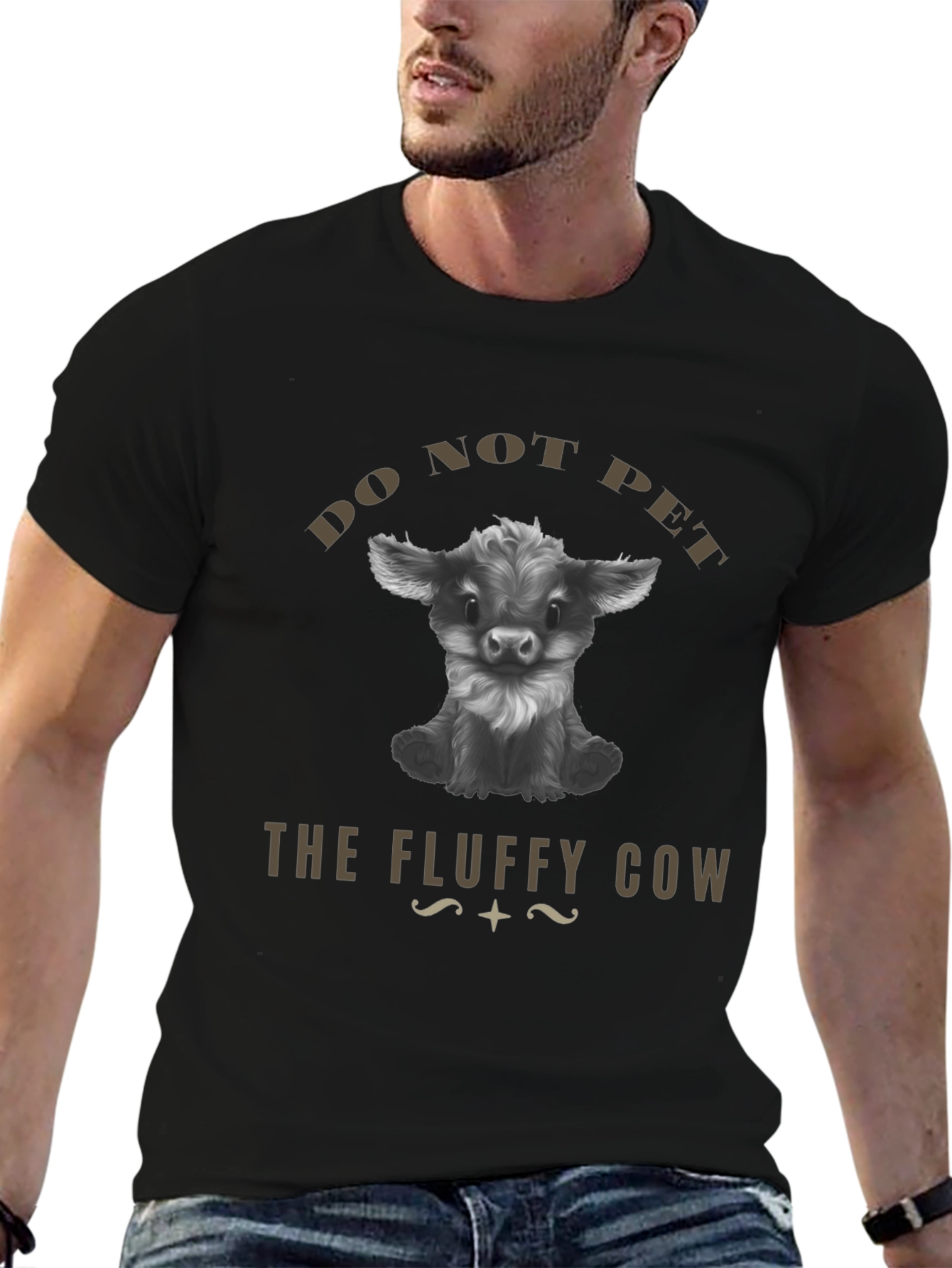 Luce esta original camiseta negra con un diseño divertido y llamativo. En el centro, destaca la adorable imagen de una vaca esponjosa en escala de grises, acompañada del texto "DO NOT PET THE FLUFFY COW" (No Acariciar la Vaca Esponjosa). Perfecta para expresar tu sentido del humor y destacar entre la multitud. Fabricada con materiales suaves y cómodos, esta camiseta es ideal para usar a diario, ya sea para salir con amigos, ir al gimnasio o simplemente relajarte en casa. Un regalo único para los amantes de los animales y las frases ingeniosas. ¡Atrévete a llevar esta camiseta y sorprende a todos con tu estilo único!
