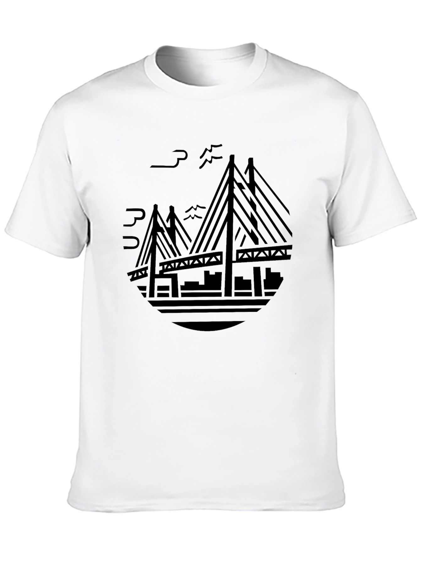 Luce un estilo moderno y minimalista con esta camiseta negra de manga corta. El diseño presenta un llamativo estampado de un puente estilizado sobre un paisaje urbano, encapsulado en un círculo. Ideal para quienes aprecian el arte urbano y la arquitectura moderna. Su tejido suave y cómodo la hace perfecta para el uso diario, ya sea para salir con amigos, ir al gimnasio o simplemente relajarte en casa. Combínala con jeans o pantalones casuales para un look relajado pero con estilo. Esta camiseta es una declaración de individualidad y buen gusto. Una prenda esencial en el armario de cualquier persona con conciencia de la moda.