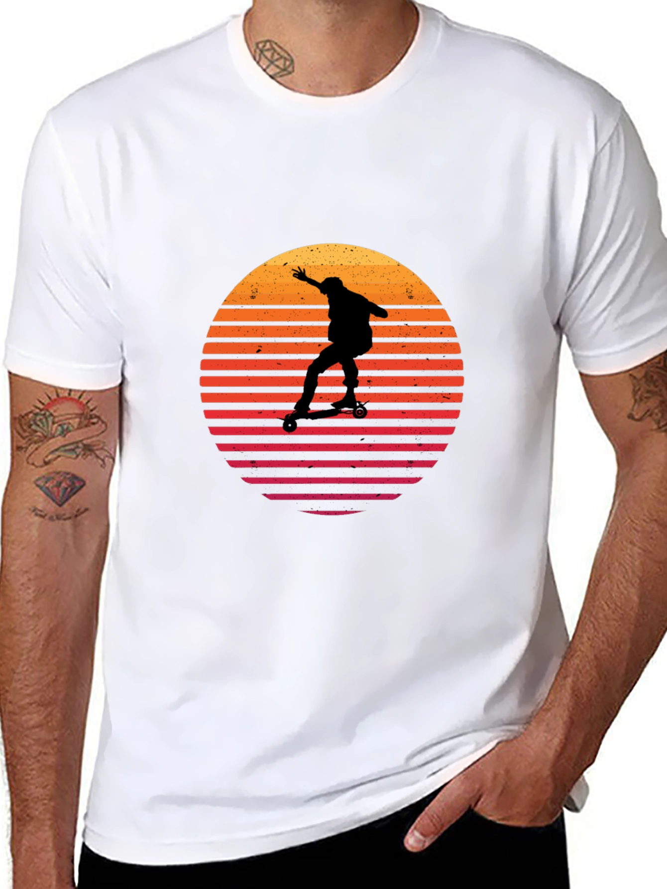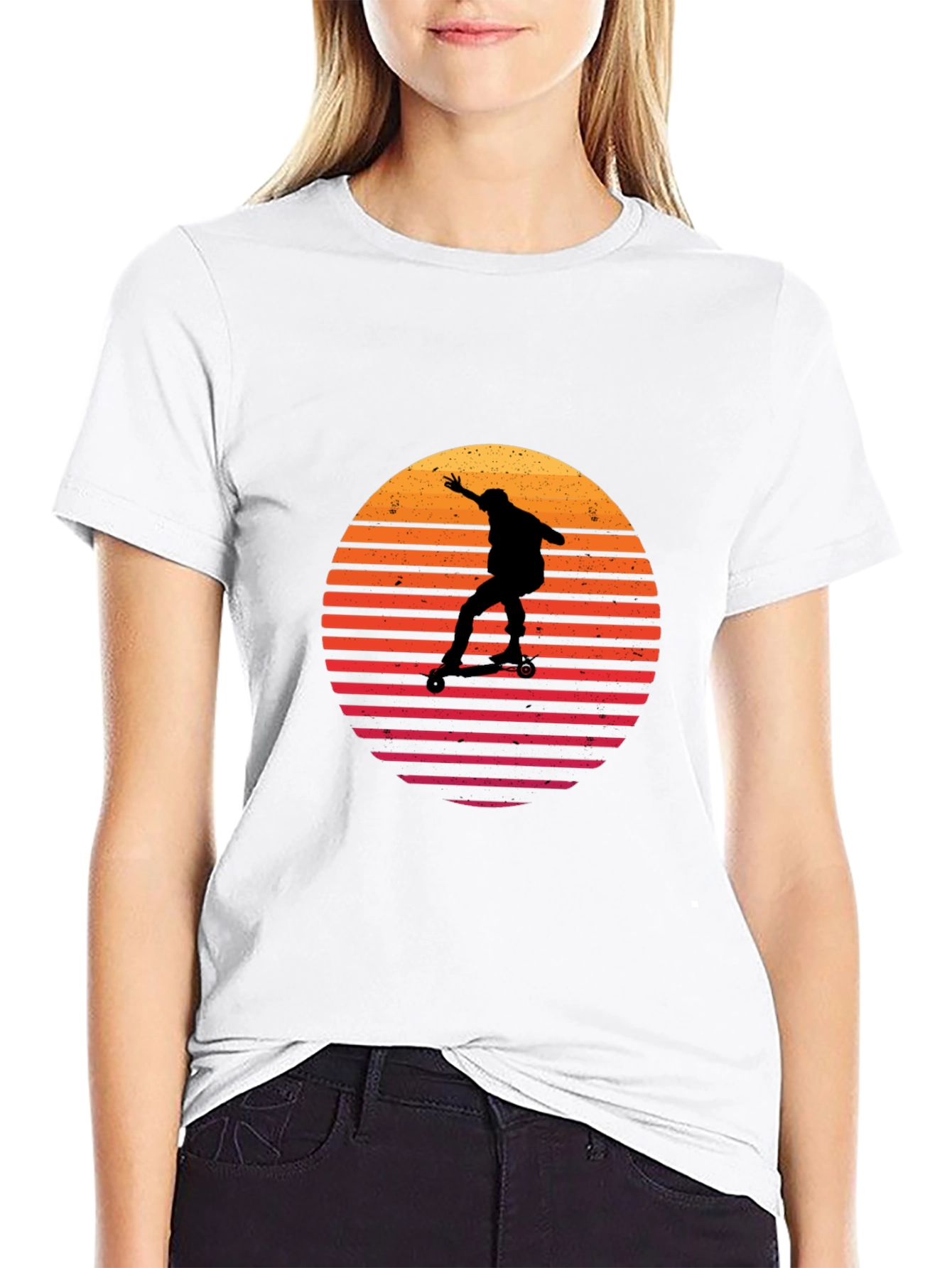 Destaca con esta camiseta negra de diseño único. Presenta una llamativa ilustración de un skater en silueta contra un atardecer retro de estilo degradado en tonos naranja, rojo y morado. Ideal para los amantes del skate y la moda vintage. Fabricada con materiales suaves y cómodos, esta camiseta es perfecta para usar a diario, ya sea para salir con amigos, ir al skatepark o simplemente relajarte en casa. Su diseño moderno y original la convierte en una prenda versátil que combina con cualquier estilo. Añade un toque retro y deportivo a tu guardarropa con esta camiseta imprescindible.
