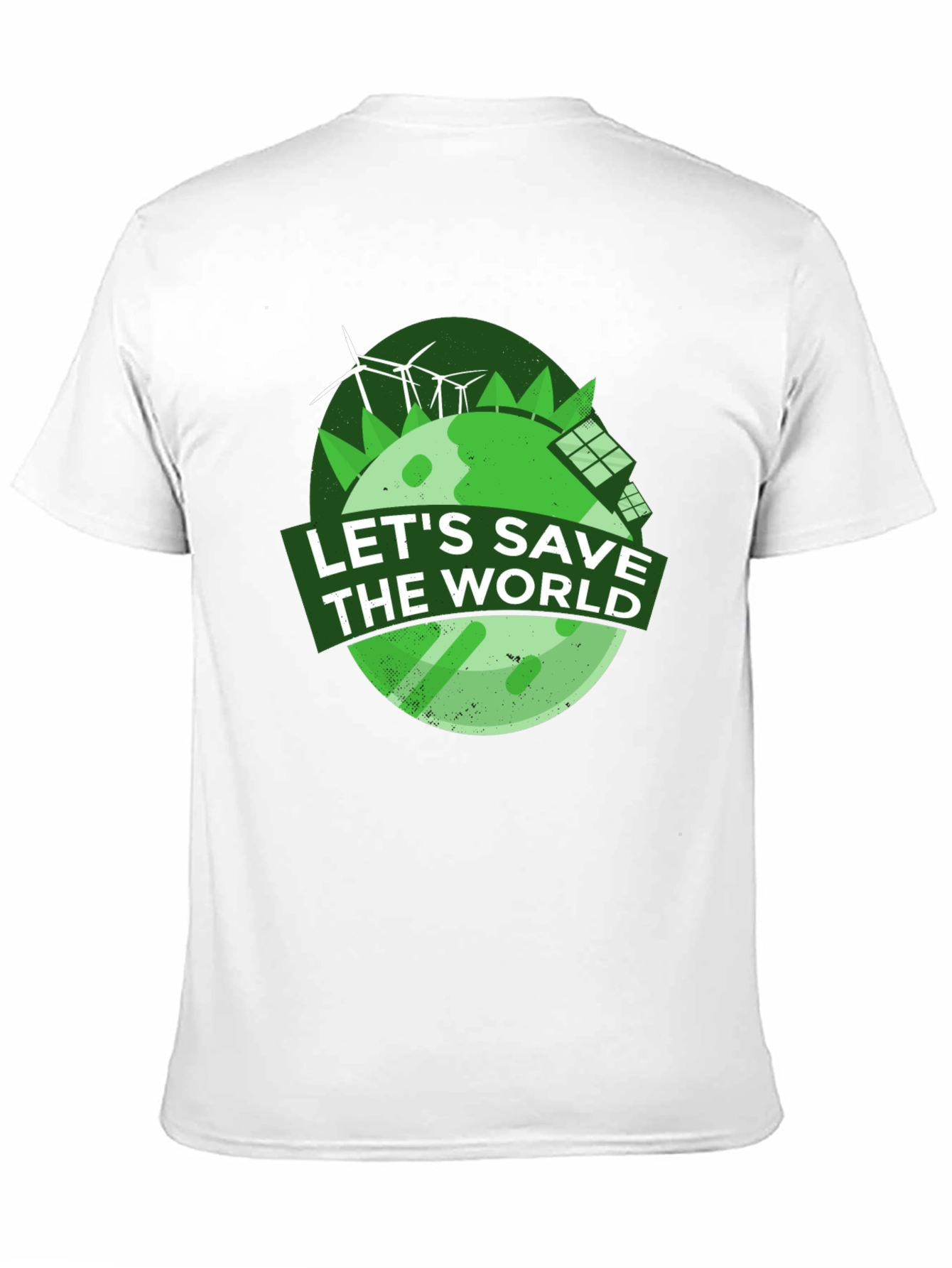 Luce esta original camiseta negra con un diseño ecológico. En el centro, un planeta verde simboliza la Tierra, adornado con molinos de viento, paneles solares y vegetación. Una pancarta proclama "Let's Save the World" ("Salvemos el Mundo"), invitando a la conciencia ambiental. Ideal para expresar tu compromiso con el planeta de una forma llamativa y moderna. Perfecta para vestir casual, eventos ecológicos o simplemente para mostrar tu apoyo a un futuro sostenible. Su diseño único la convierte en una prenda imprescindible para cualquier ecologista moderno.