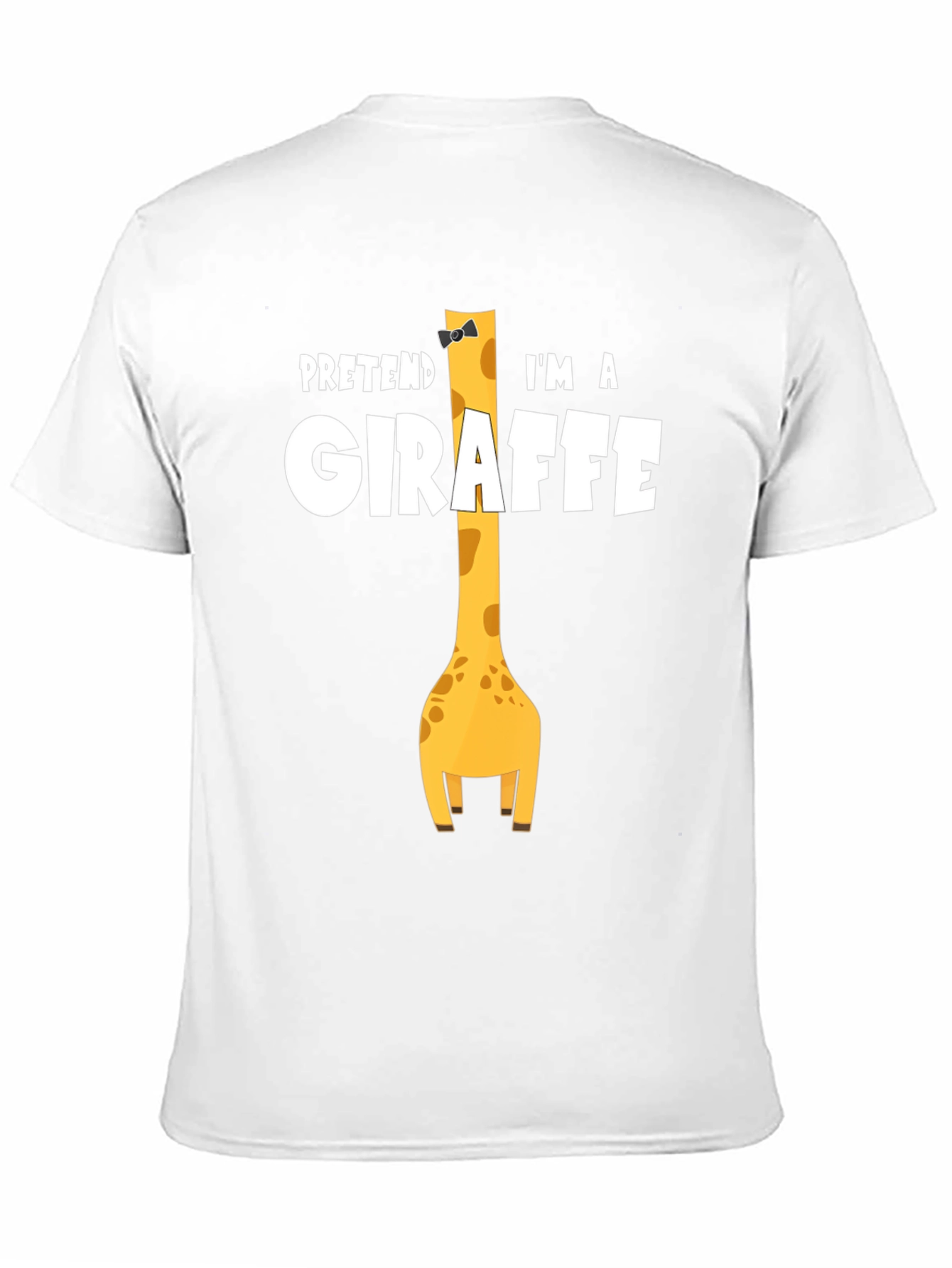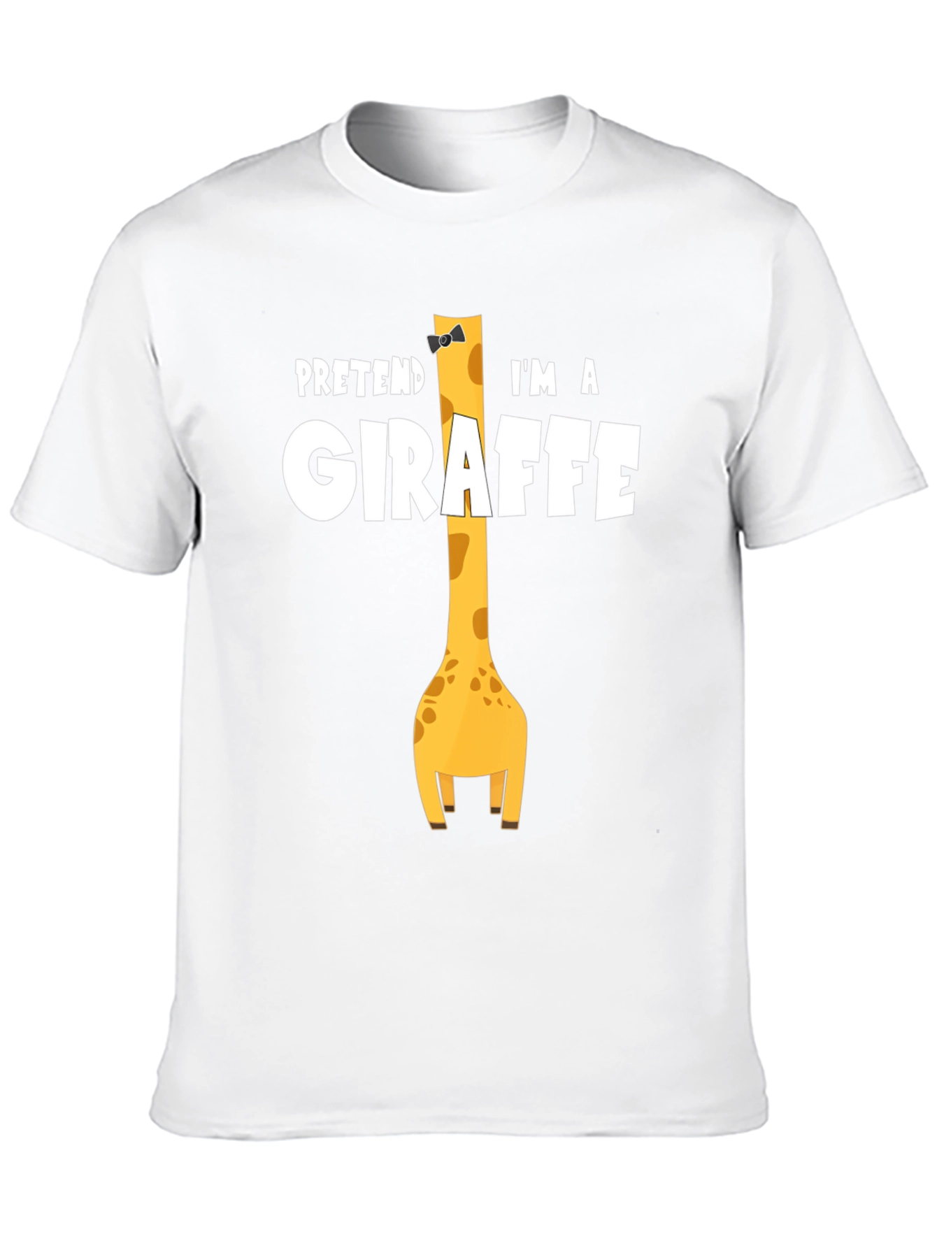 Luce esta original camiseta negra con un diseño divertido y llamativo. Presenta un gracioso dibujo de una jirafa, acompañada del texto "PRETEND I'M A GIRAFFE" (Finge que soy una jirafa) en letras blancas destacadas. Ideal para aquellos que buscan un toque de humor y originalidad en su vestuario. Fabricada con materiales cómodos y duraderos, perfecta para el uso diario, eventos informales o fiestas temáticas. Destaca entre la multitud con esta prenda única y expresa tu lado más divertido. ¡Consigue la tuya y presume de estilo!