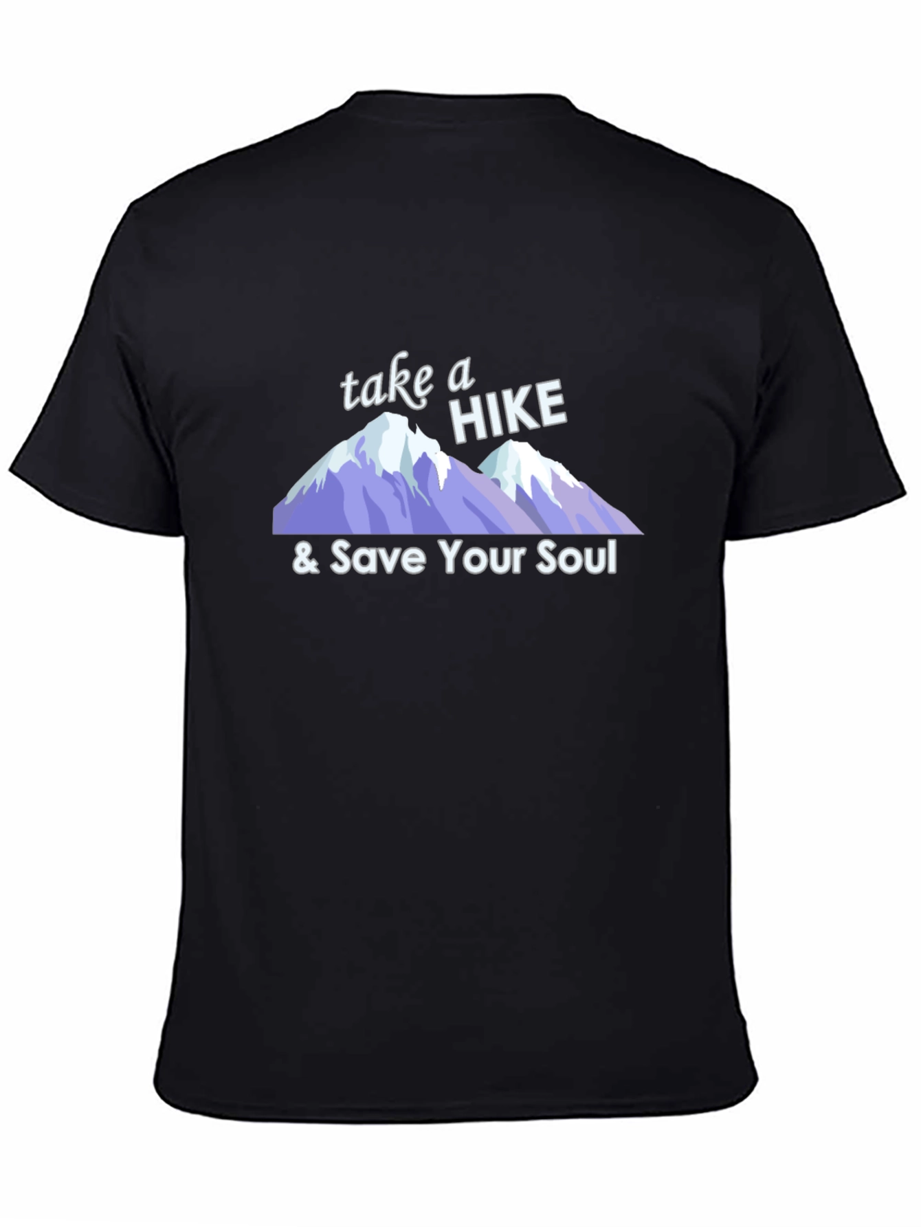 Atrévete a destacar con esta camiseta negra de diseño único. Presenta un estampado llamativo con la frase "Take a Hike & Save Your Soul" sobre un diseño de montañas nevadas en tonos púrpura y blanco. Perfecta para los amantes de la naturaleza y las aventuras al aire libre, esta camiseta combina estilo y comodidad. Su color negro clásico la hace fácil de combinar con cualquier atuendo, ya sea para una caminata casual o para expresar tu personalidad en el día a día. Fabricada con materiales suaves al tacto, garantiza confort durante todo el día. ¡Añade un toque aventurero a tu guardarropa con esta prenda original!