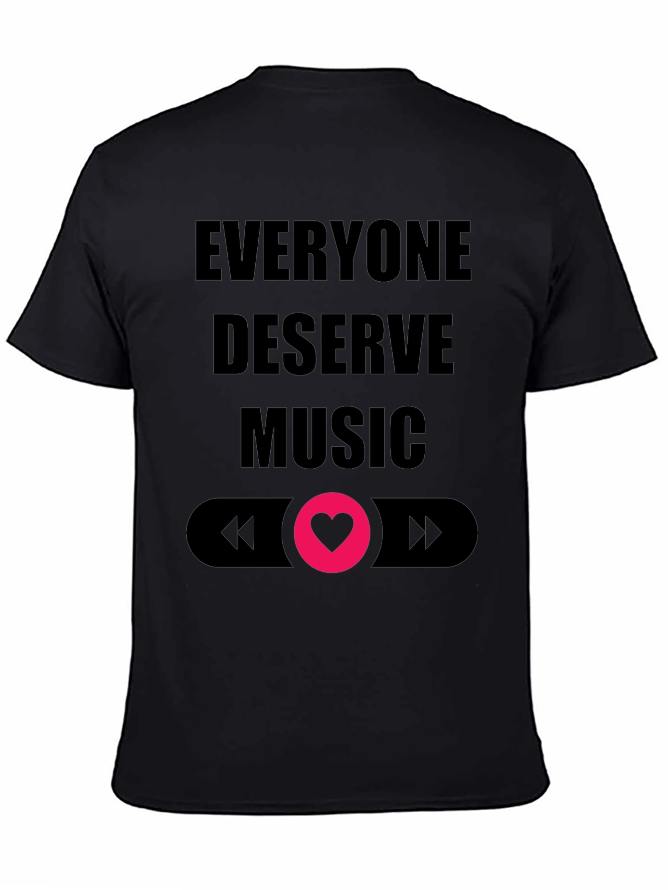 Luce tu amor por la música con esta camiseta negra de diseño único. La frase "Todos Merecen Música" destaca sobre el fondo negro, acompañada de un original símbolo de reproducción con un corazón. Ideal para melómanos y amantes del buen estilo. Perfecta para conciertos, reuniones con amigos o simplemente para expresar tu pasión por la música en tu día a día. Fabricada con materiales suaves y cómodos, esta camiseta te brindará un ajuste perfecto y durabilidad. ¡Demuestra tu amor por la música con esta prenda original!