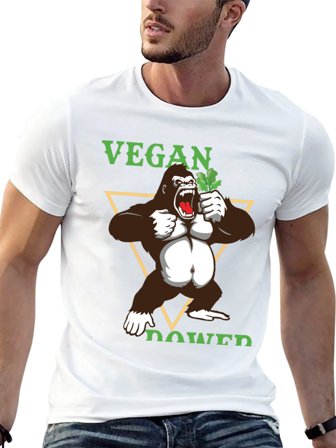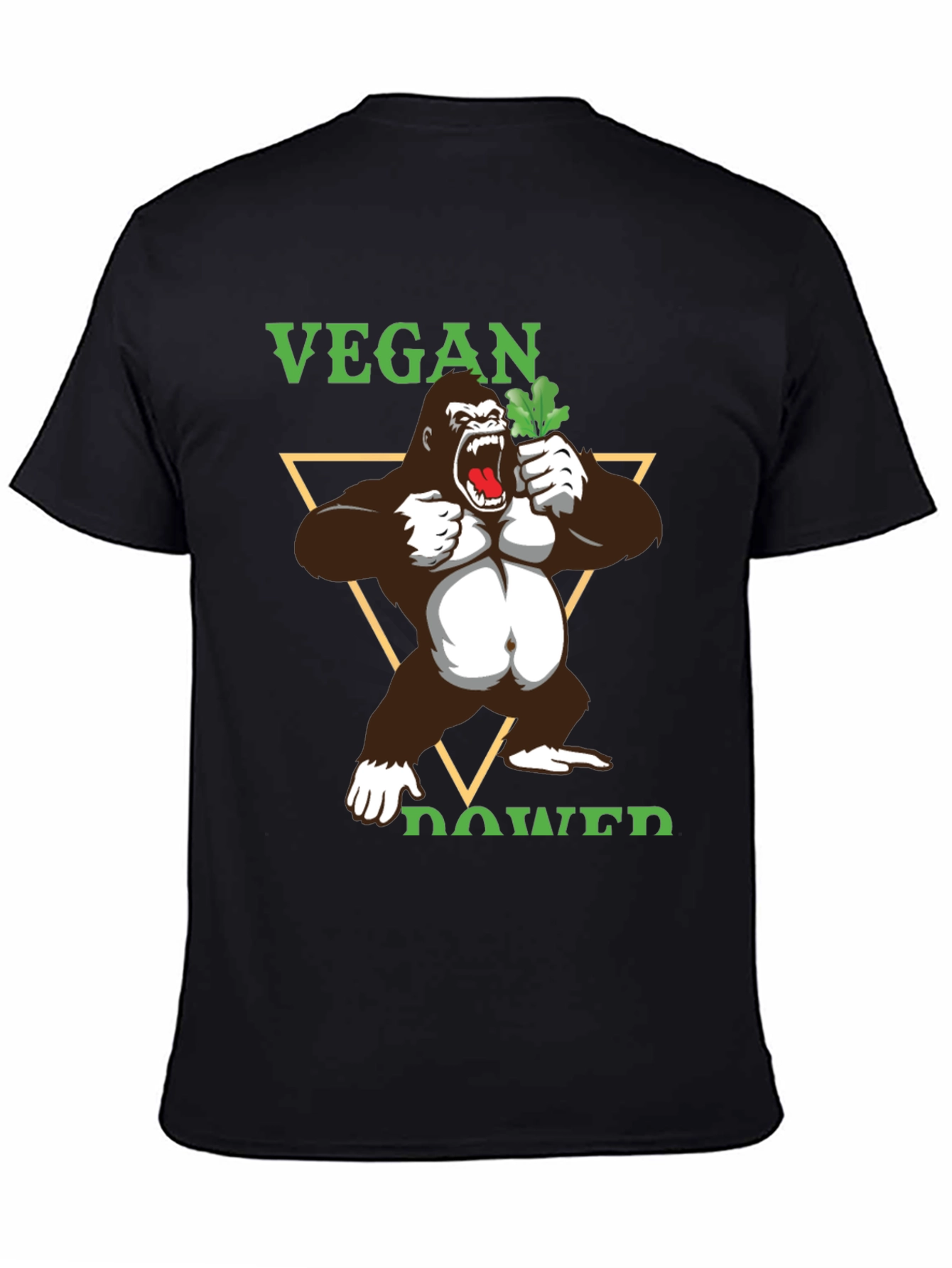 Demuestra tu amor por los animales y el planeta con esta llamativa camiseta negra. Presenta un diseño original de un gorila robusto, símbolo de fuerza y vitalidad, comiendo vegetales frescos. La frase "VEGAN POWER" en verde vibrante resalta tu compromiso con un estilo de vida vegano. Ideal para usar a diario, en eventos veganos o como un regalo consciente. Fabricada con materiales suaves y duraderos para garantizar comodidad y resistencia. Vístela con orgullo y comparte tu pasión por un mundo más sostenible y compasivo.